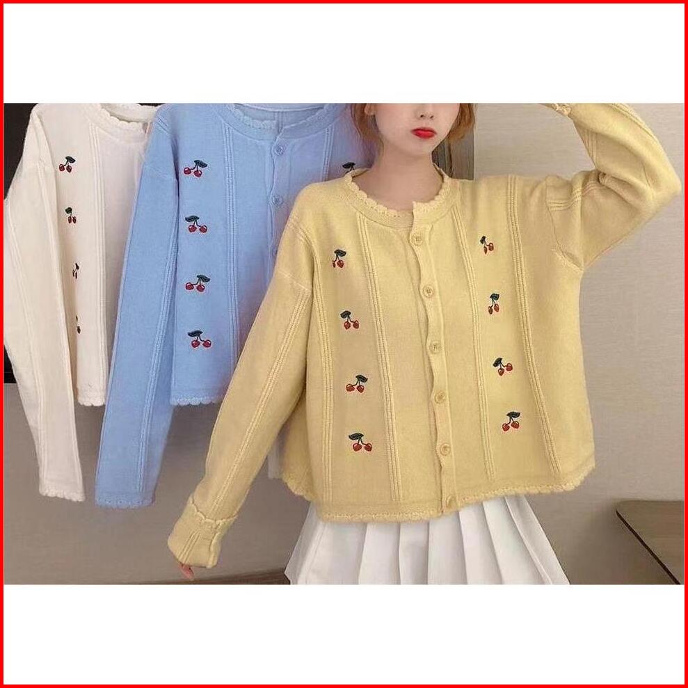 Basic Cherry Three Cardi Korean Cardigan Sweather Korea Sweater Wanita Bahan Rajut Premium