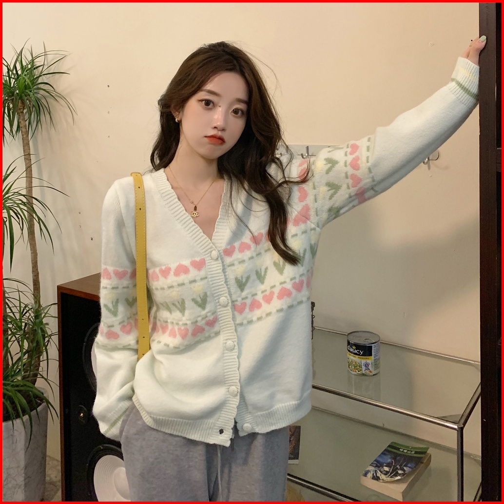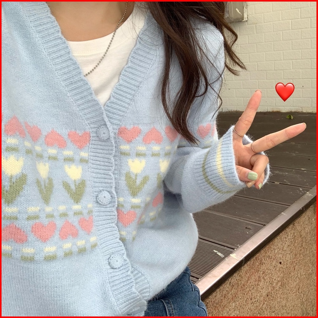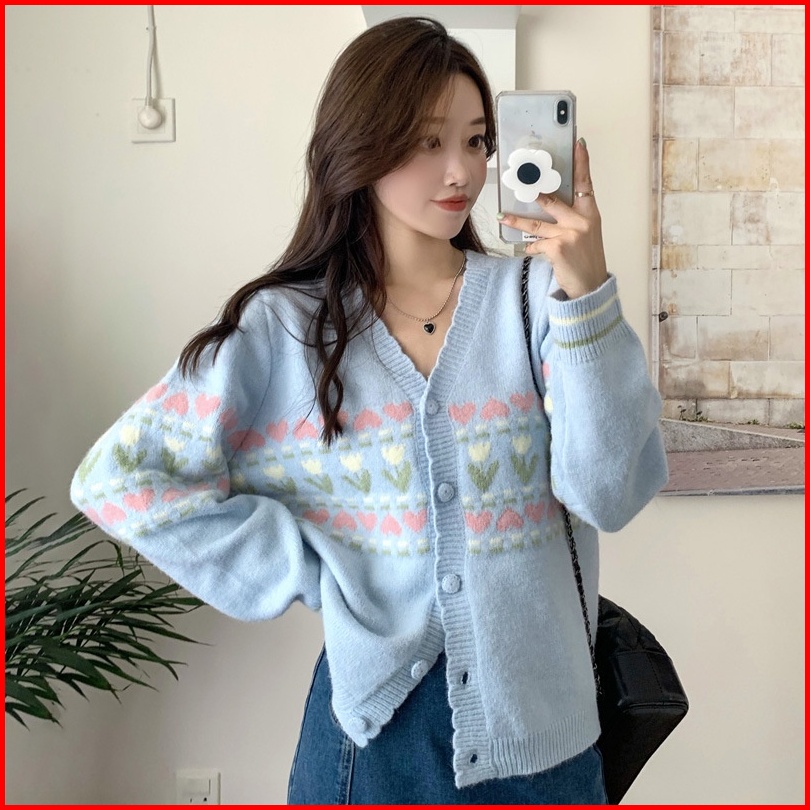 Love Flower Korean Cardigan Sweather Korea Sweater Wanita Bahan Rajut Premium