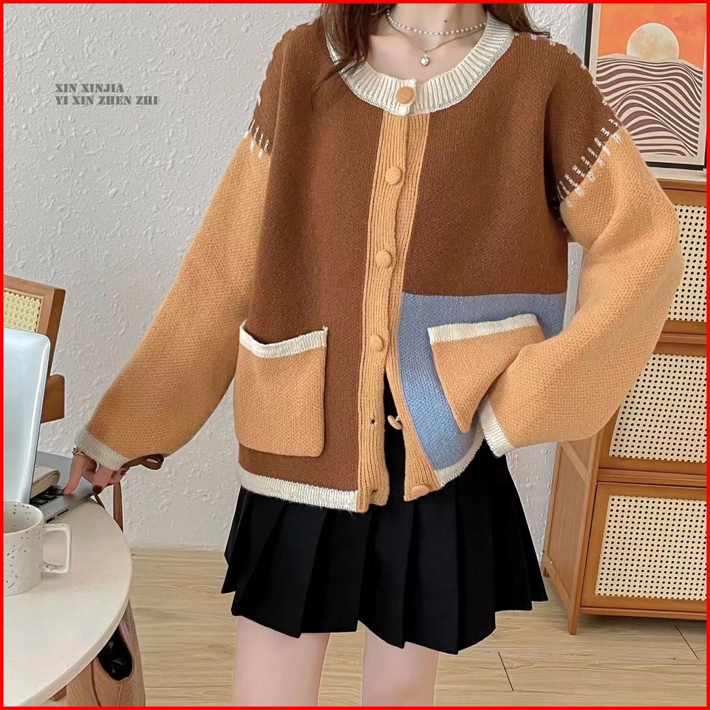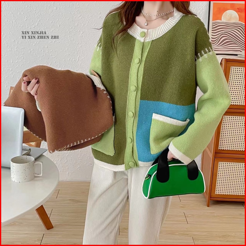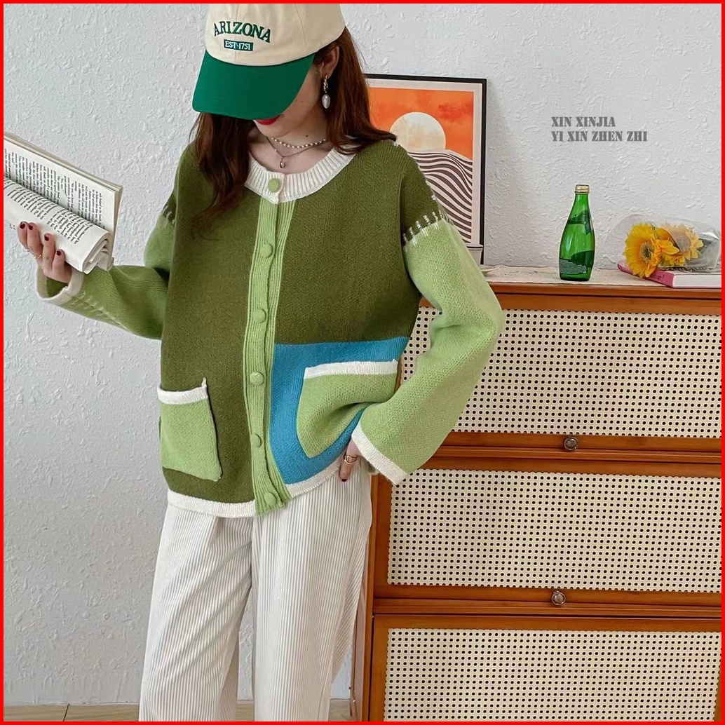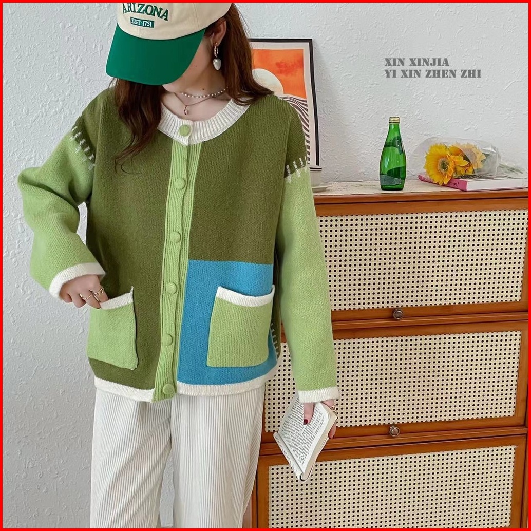 Green Brown Pocket Cardi Korean Cardigan Sweather Korea Sweater Wanita Bahan Rajut Premium