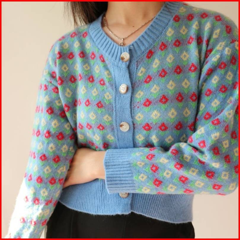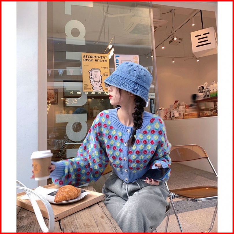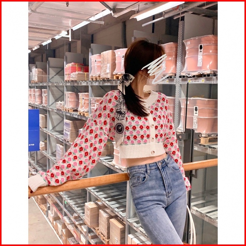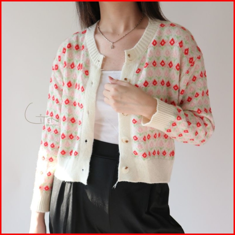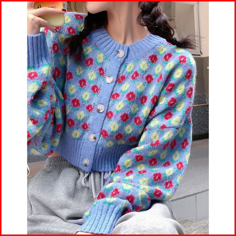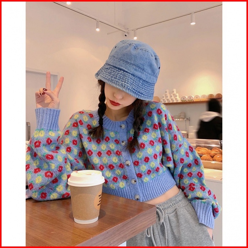 Full Flower Crop Cardi Cardigan Rajut Murah Cardigan Ala Korea Sweater Korea