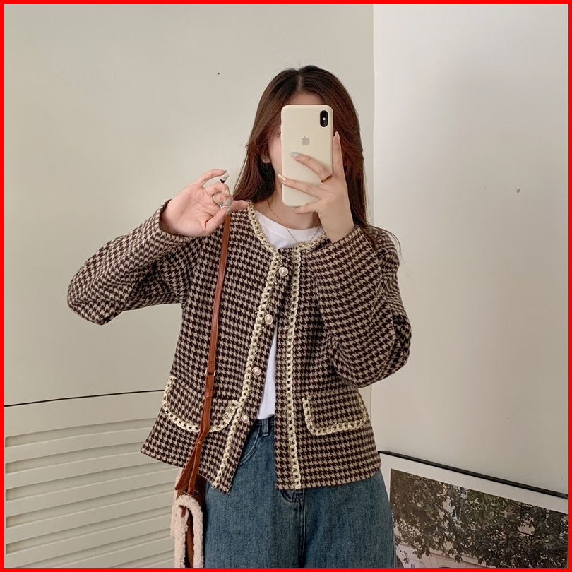 Xiaozhainv Cardigan Rajut Wanita Korean Style Blazer Wanita Korea Jaket Corduroy Wanita Cardigan Lengan Panjan Wanita Cr