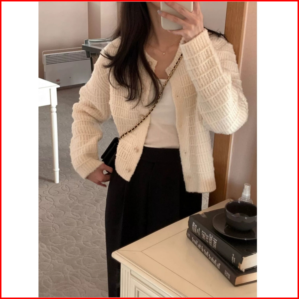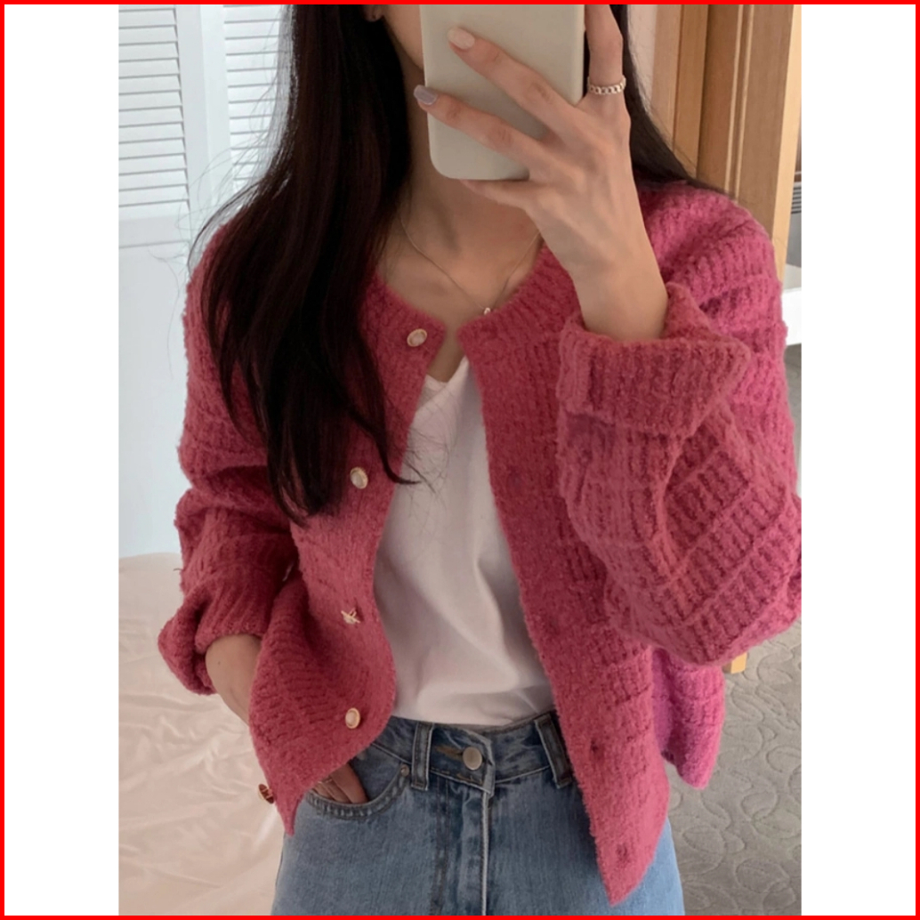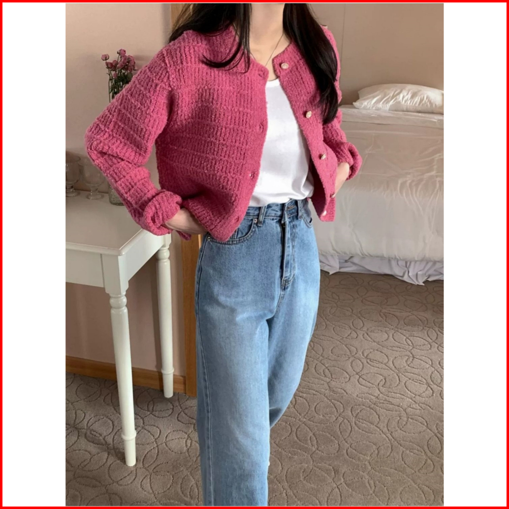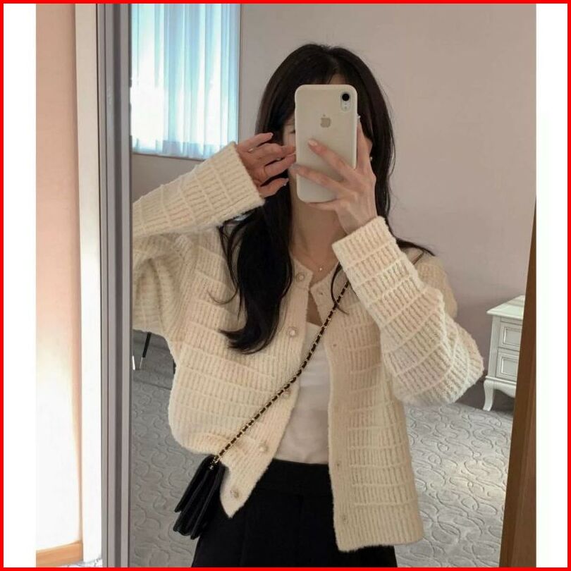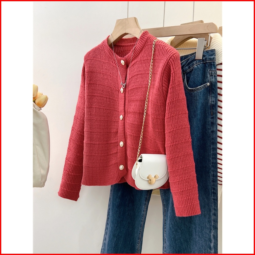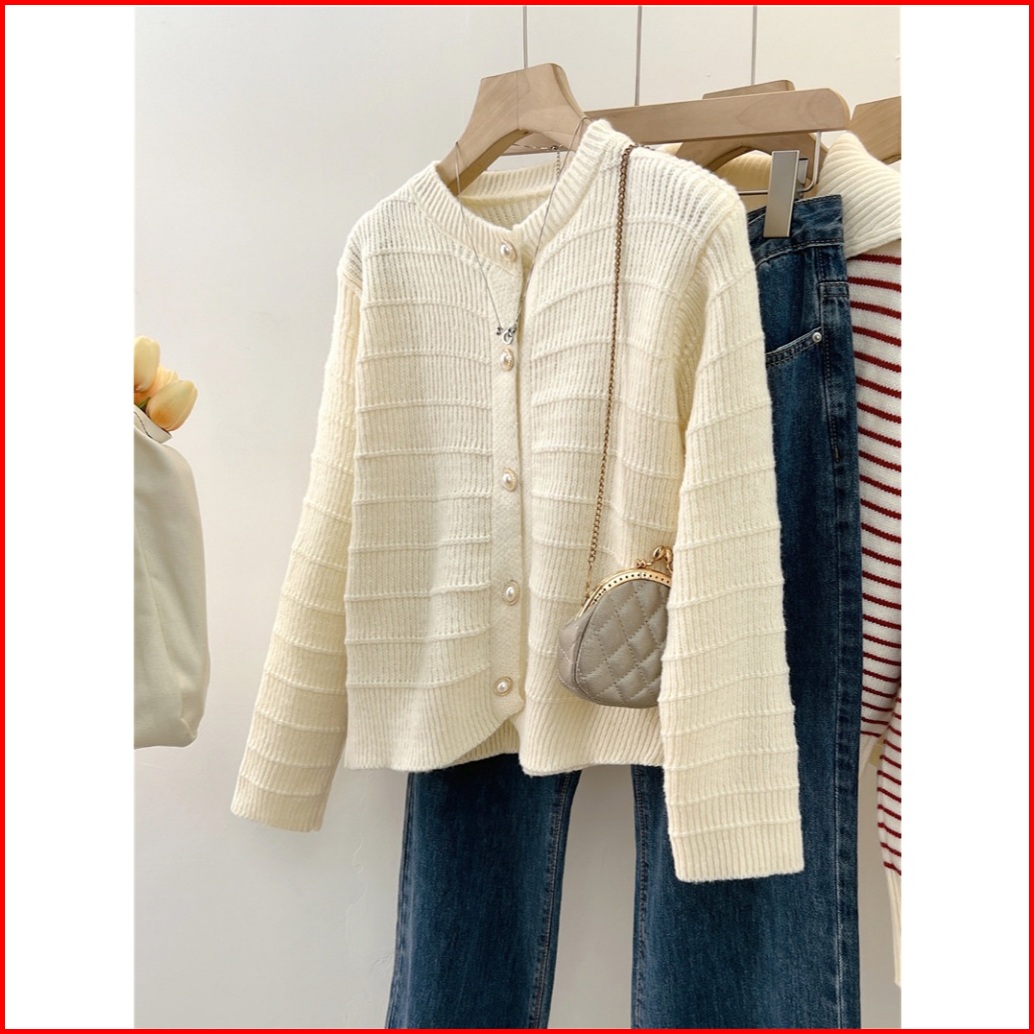 Xiaozhainv Korean Style Retro Lengan Panjang Kardigan Retro Terbaru Outer Knit Cardigan Lengan Panjang V-neck Crop Top C