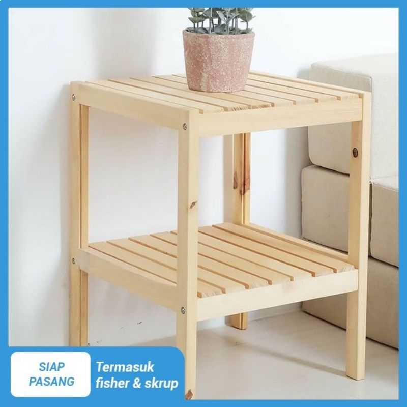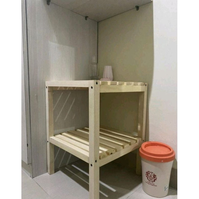 OANA WOODEN SHELF 2 TINGKAT RAK KAYU RAK SERBAGUNA RAK DISPLAY RAK KAMAR MANDI RAK MURAH