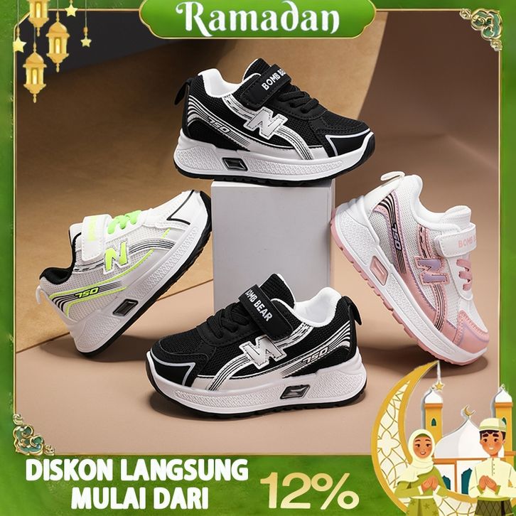 Sepatu Sneakers Anak/ Sepatu Anak Sekolah Laki Laki Perempuan Pink Hitam Usia 3-12 Tahun