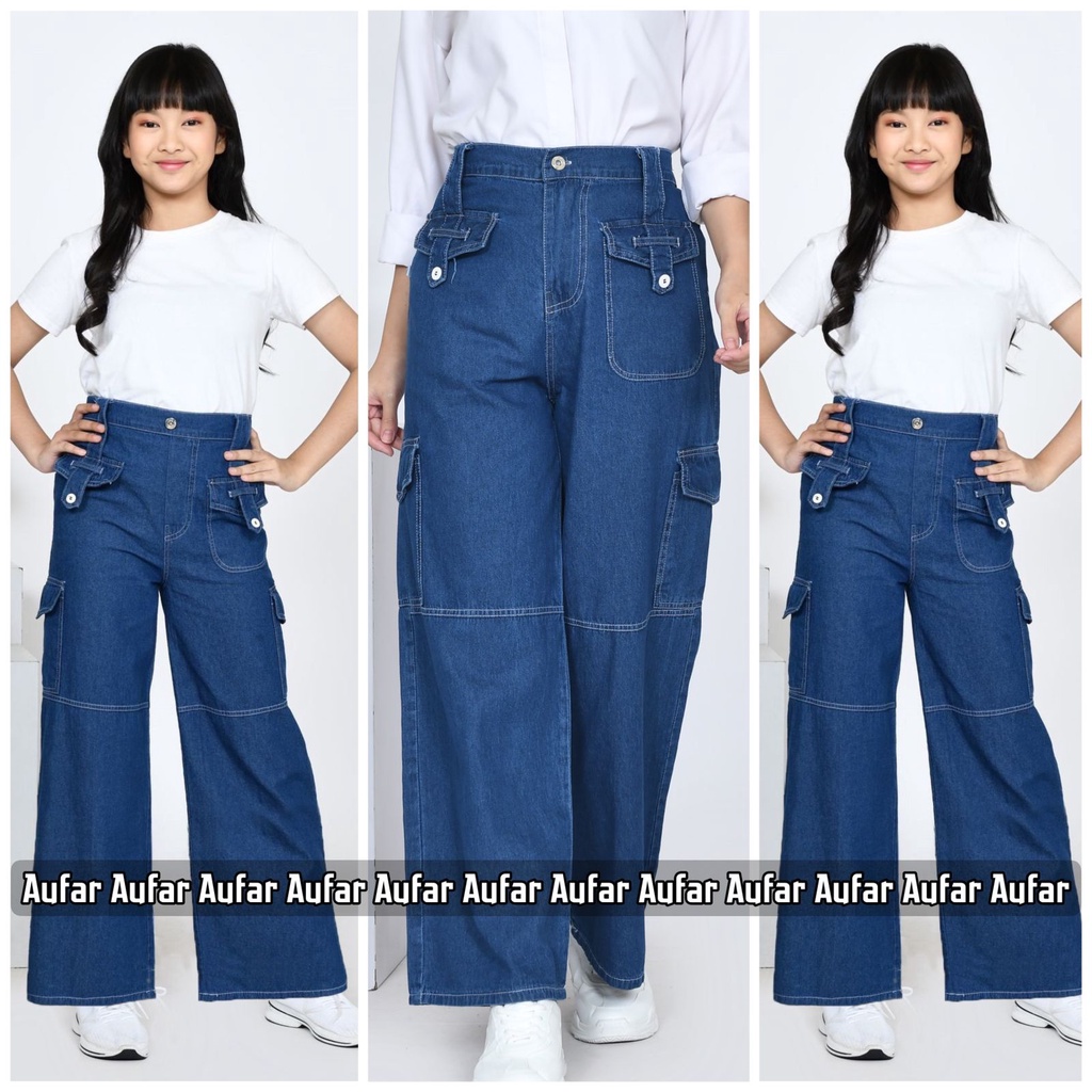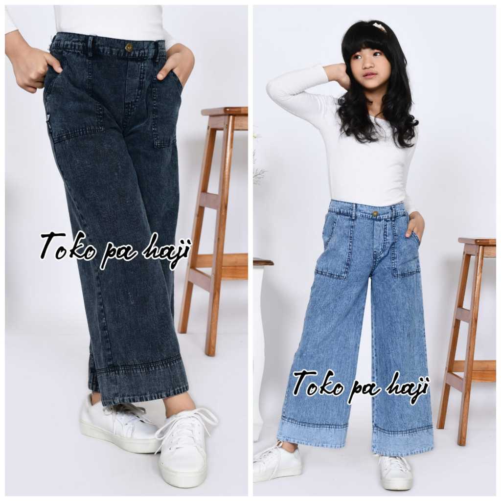 CELANA JEANS KULOT CARGO ANAK PEREMPUAN HIGHWAIST 5-17 TAHUN