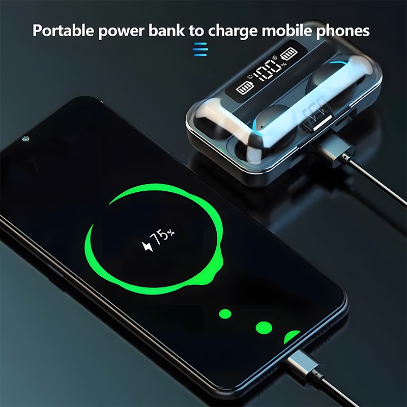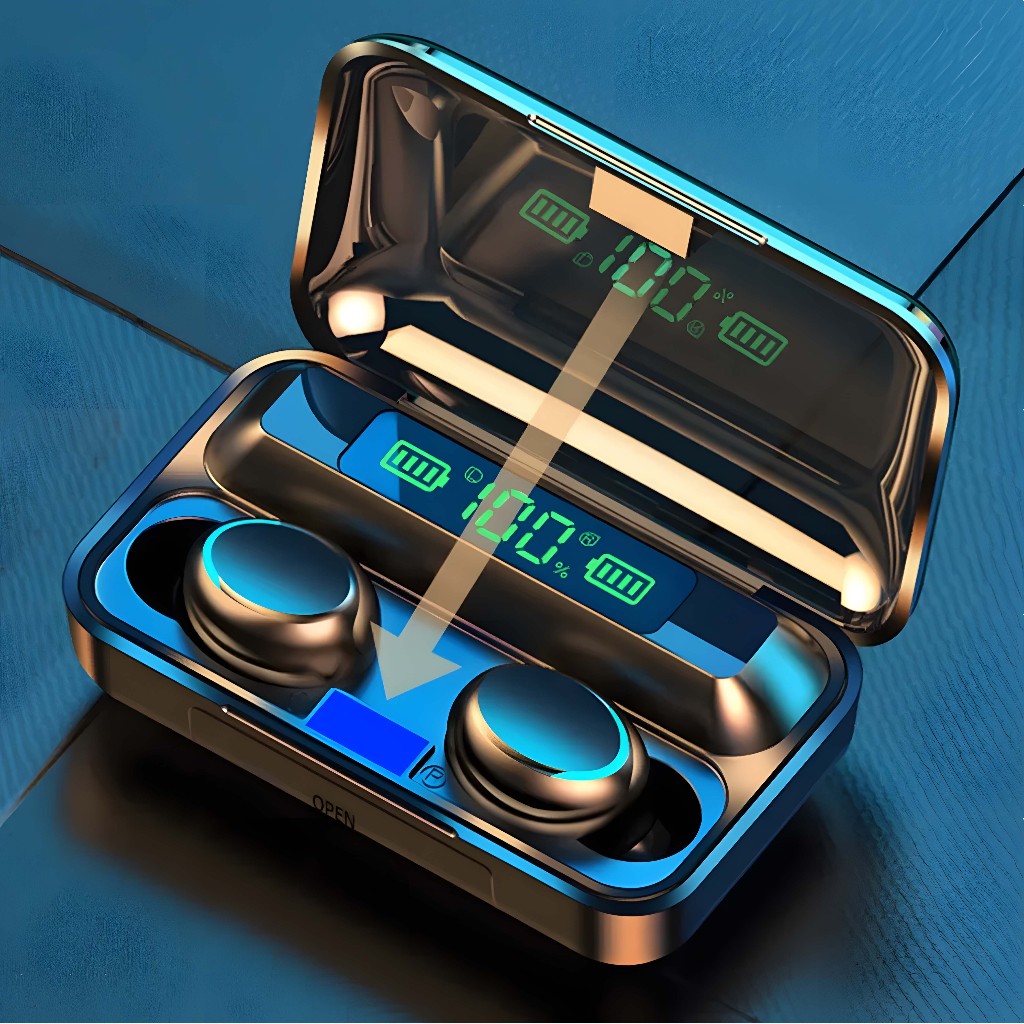 PUNING LENTIVEN EARPHONE HEADSET BLUETOOTH SPORT TAHAN AIR WIRELESS WITH POWERBANK LED DISPLAY TOUCH CONTROL