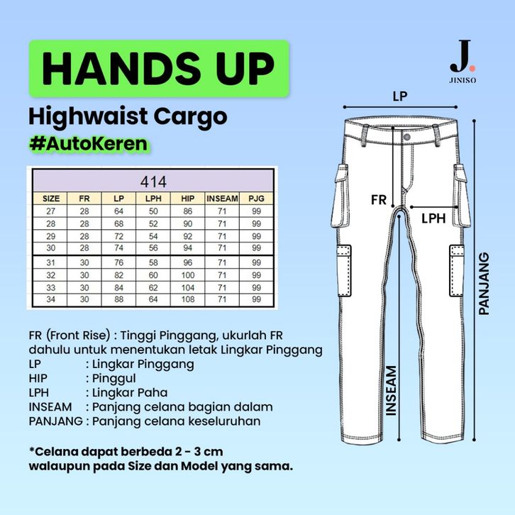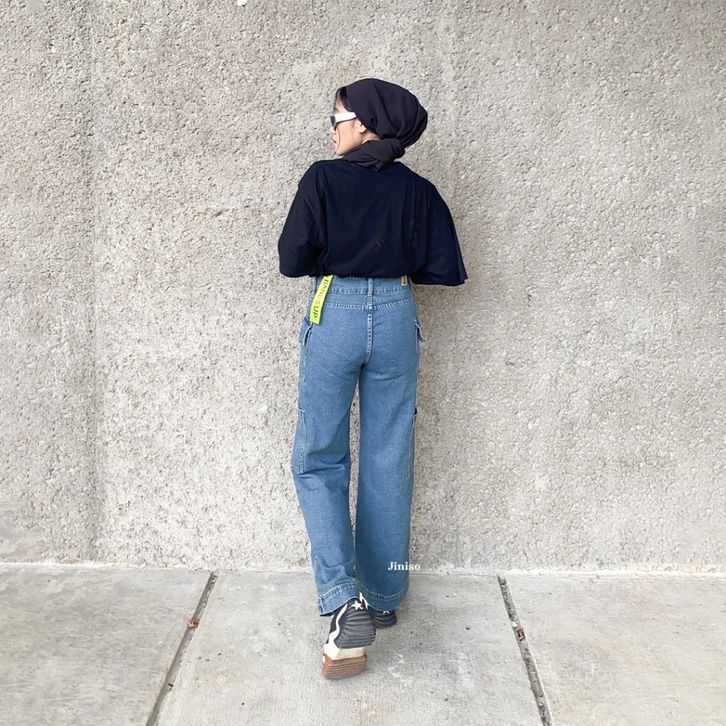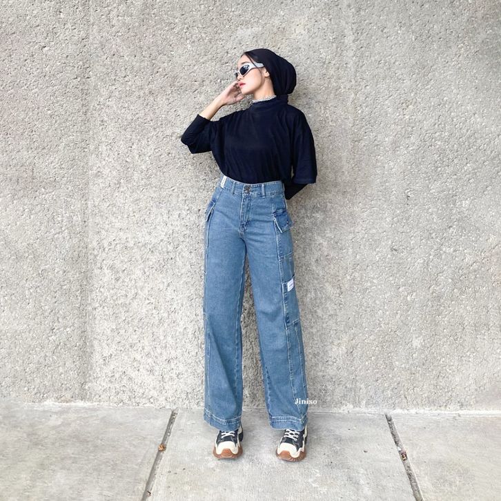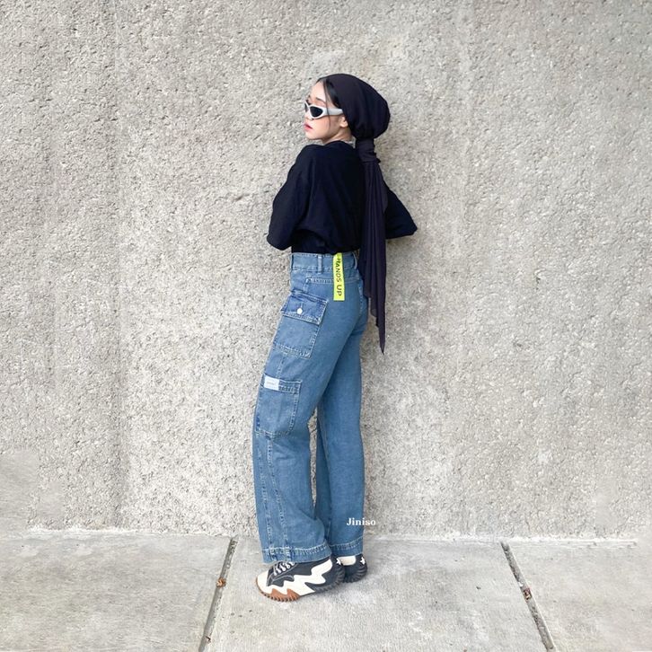 JINISO - Celana Cargo Wanita Jeans High Waist Baggy Jeans 414 HANDS UP Celana Cargo Jeans Cewek Jumbo Terbaru