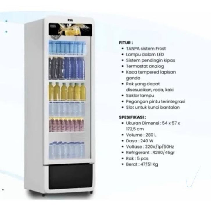 [Star] SHOWCASE MINUMAN DINGIN SHOWCASE RSA RUBY 280 5 RAK DISPLAY cooler kulkas kaca LOW WATT KULKAS LEMARI KULKAS