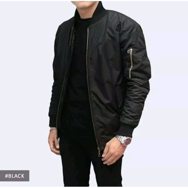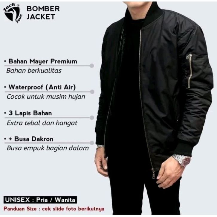 Jaket Bomber Parasut Taslan Warna Hitam Jaket Bomber Polos Cowok Wanita Jaket Pria Bomber Original Ukuran M -XXL
