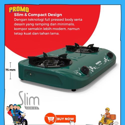 MASPION MKG-102 DGSF SLIM SERIES KOMPOR GAS 2 TUNGKU (DARK GREEN) TERLARIS