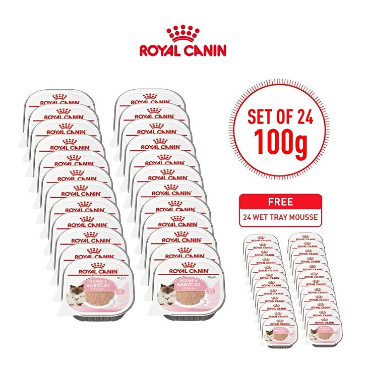 MAKANAN BASAH ROYAL CANIN MOTHER & BABYCAT MAKANAN KUCING MOUSSE SET OF 24 100G FREE 24 POUCHES MOTHER BABYCAT 48 PCS