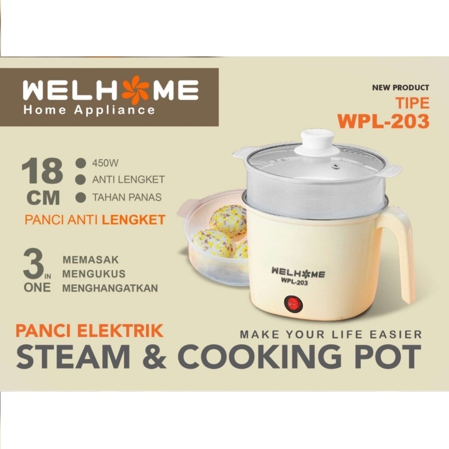 PANCI LISTRIK MULTIFUNGSI WELHOME WPL-203 18 CM COOKING POT ANTI LENGKET KUKUSAN SERBAGUNA KUALITAS TERBAIK TERMURAH