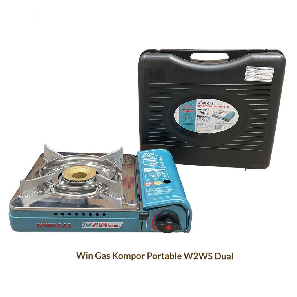 KOMPOR GAS PORTABLE WINN GAS 2WS STAINLESS STEEL DOUBEL SAFETY LOCK CAMPING KOMPLIT MURAH PREMIUM QUALITY PROMO