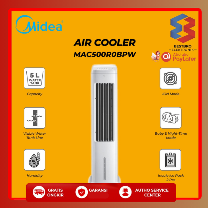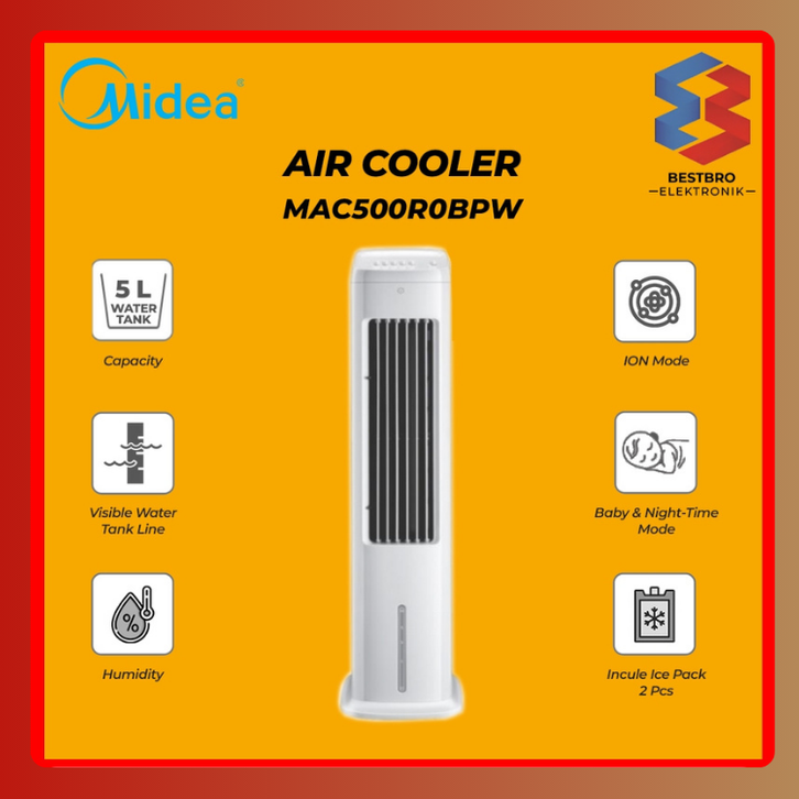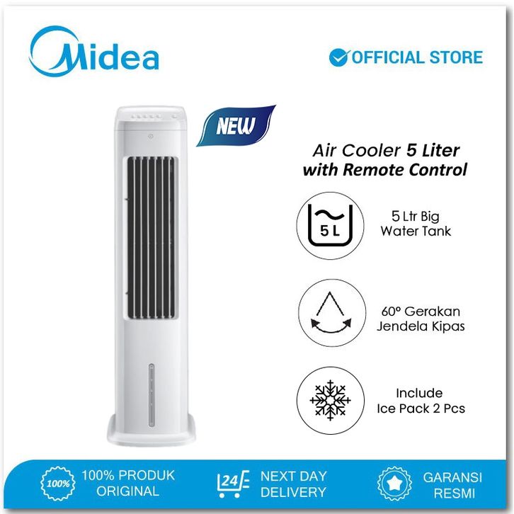 Kipas Angin Ac Midea Tower Fan Air Cooler 3in1 MAC500M0BPW 5L Humidifier Diffuser
