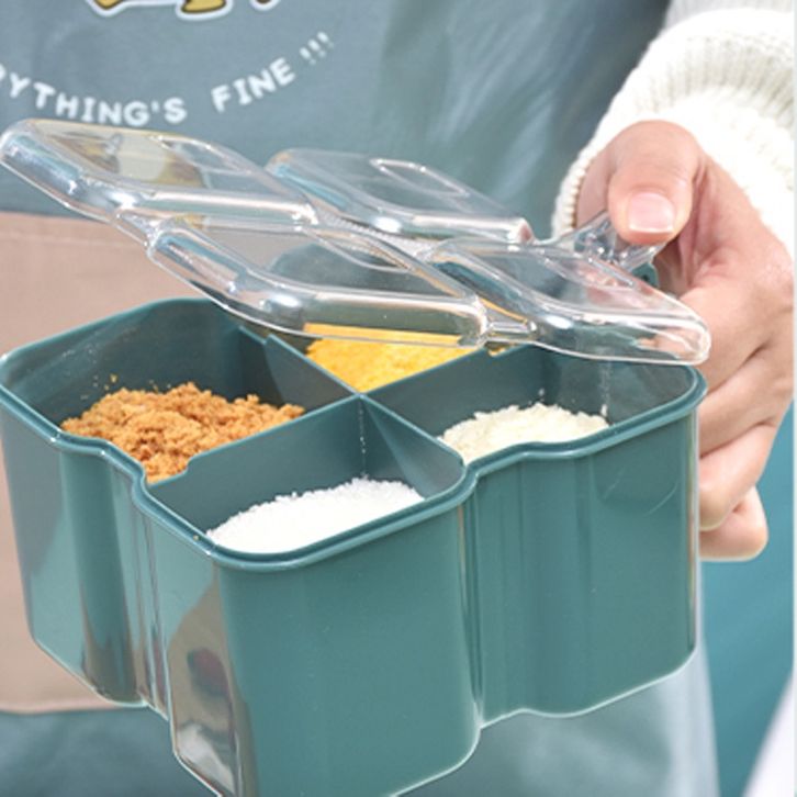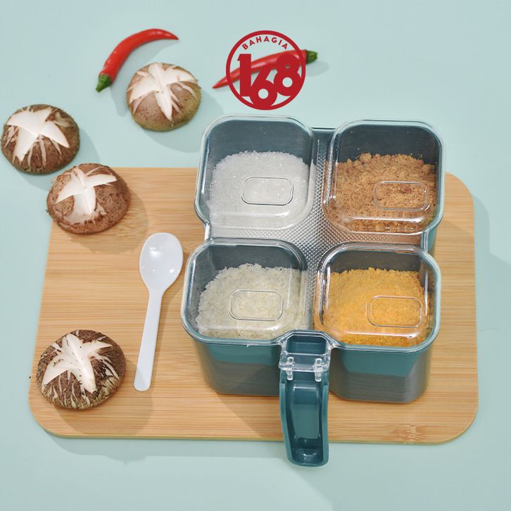 Tempat Bumbu Dapur 4IN1 Free Sendok Rak Seasoning Box 4 Sekat Kotak Wadah Toples Praktis Kitchen