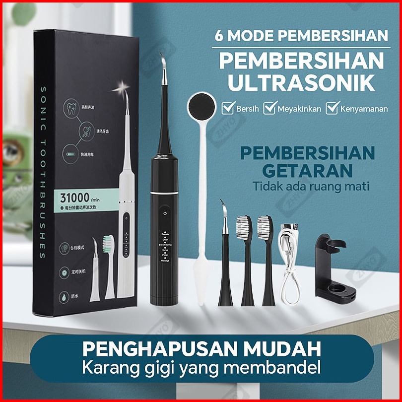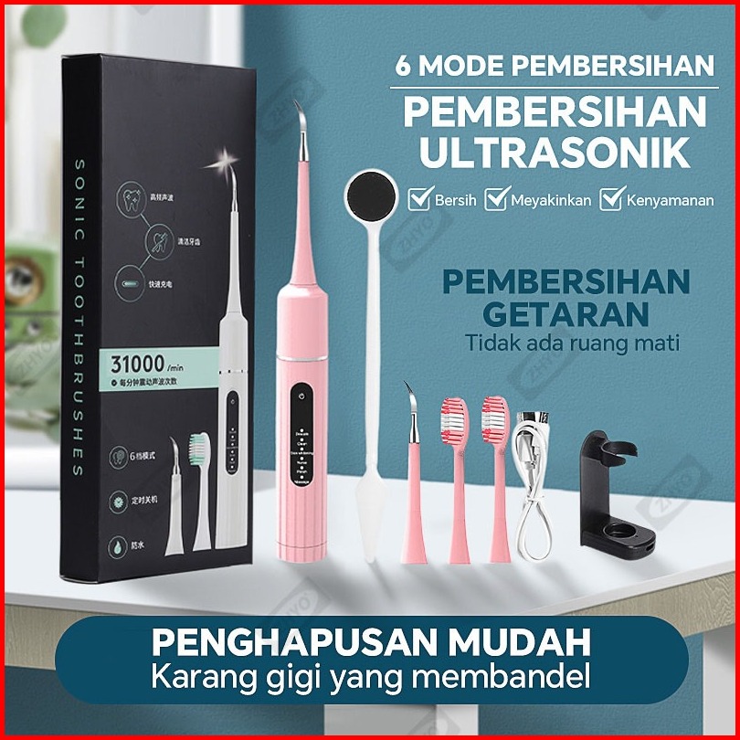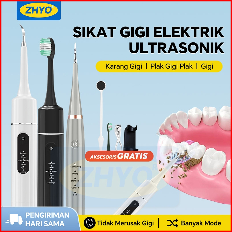 Zhyo 2 In 1 Pengukur Ultrasonik Scaler Listrik Portabel Sikat Gigi Elektrik Menghilangkan Karang Gigi Tartar Gigi Kuning