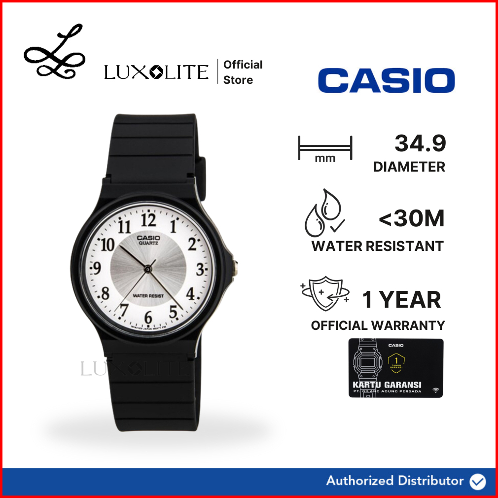 Luxolite Casio Jam Tangan Unisex Kecil Analog Mq-24-7b3ldf Mq-24-7b3 White Dial Black Resin Strap