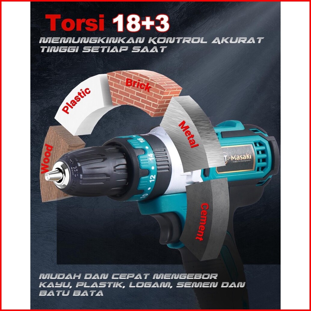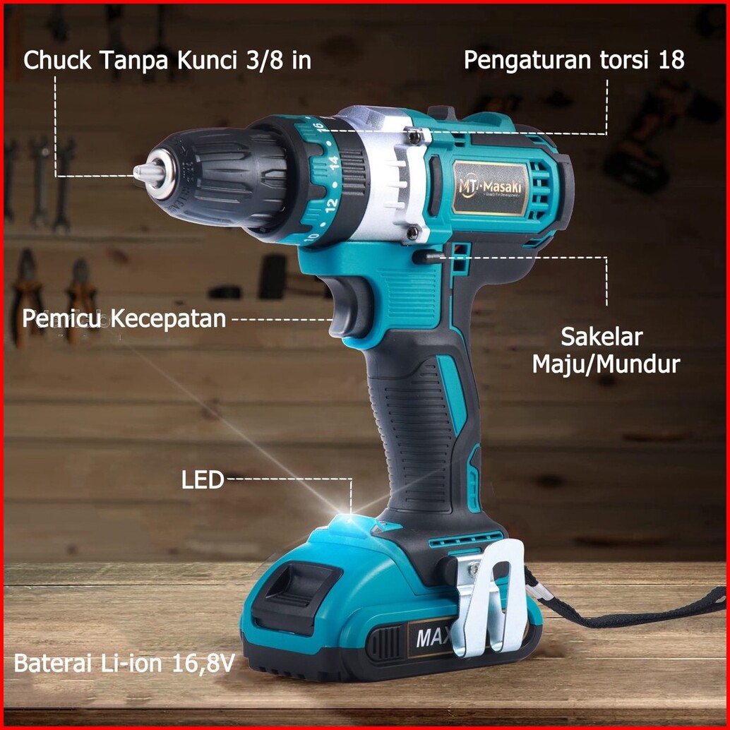 Mtmasaki Mesin Bor Baterai Tangan Cordless Drill 21vf Mt-8350