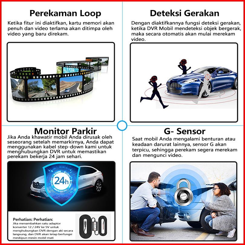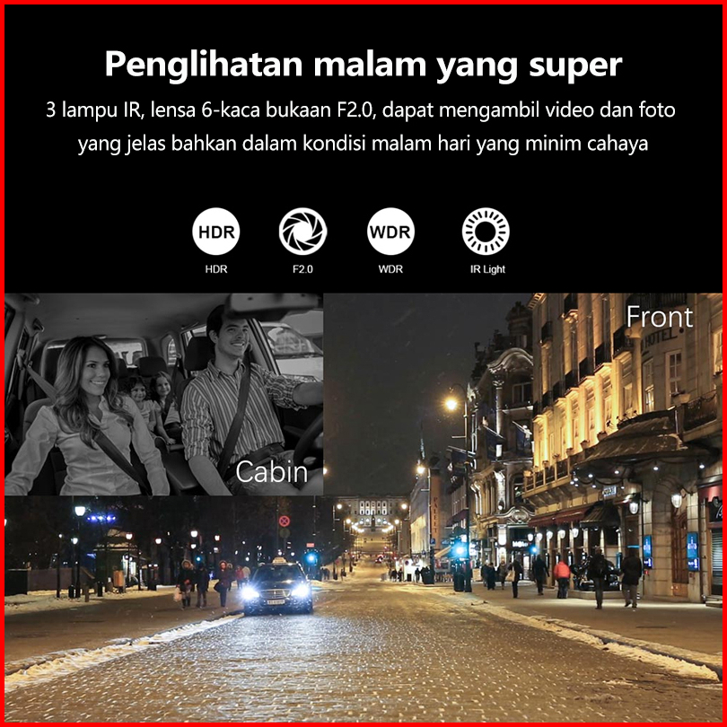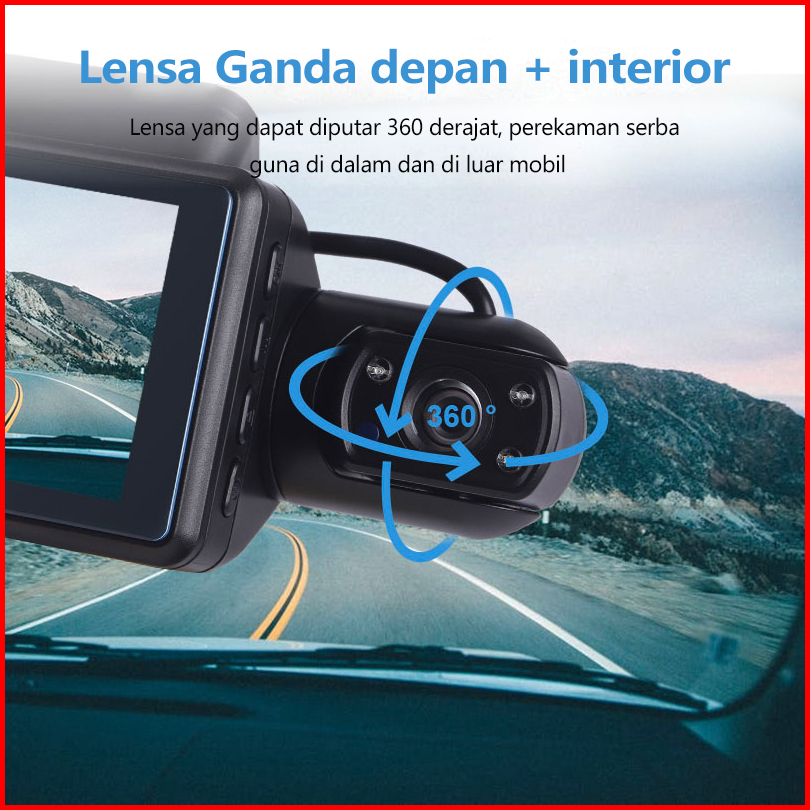 Acroder Dashcam 1080p Layar Ips Lensa Ganda Night Vision G-sensor Perekaman Loop