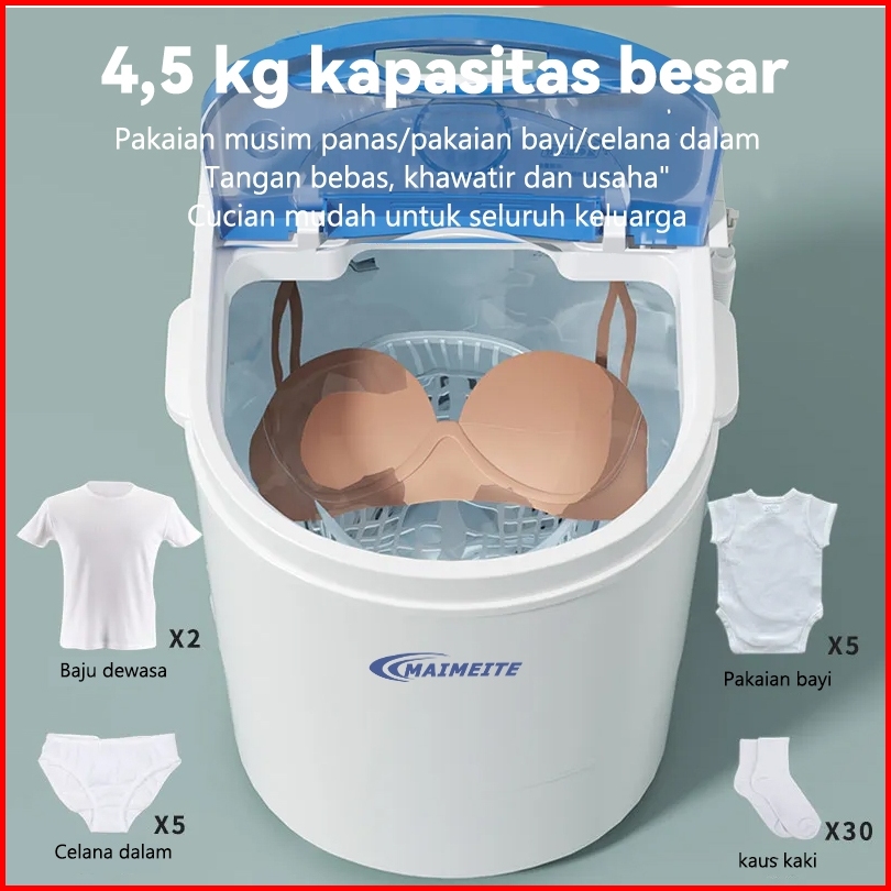 Maimeite Mesin Cuci Mini Alat Pengering Pakaian Portabel Washing Minimalis Ringan Daya Rendah 4.5kg