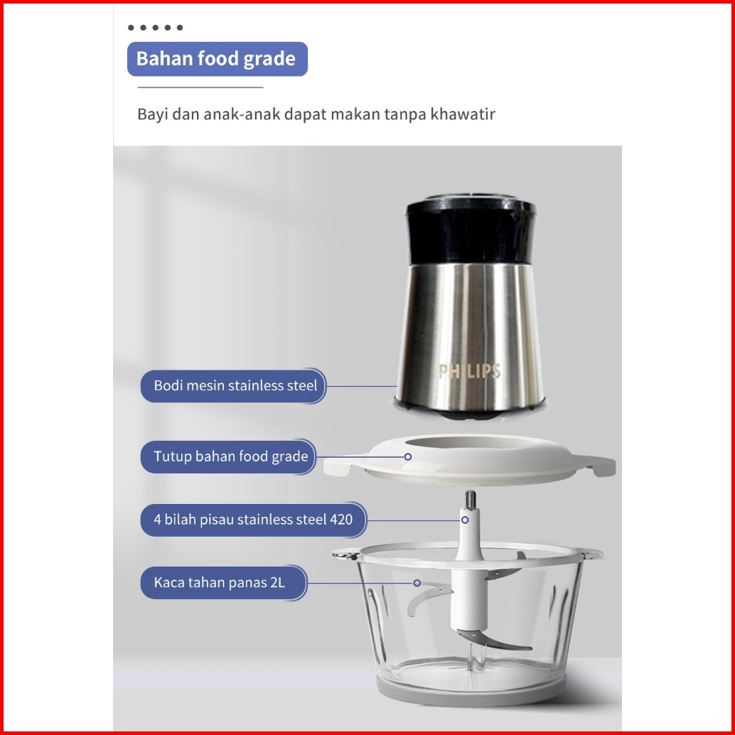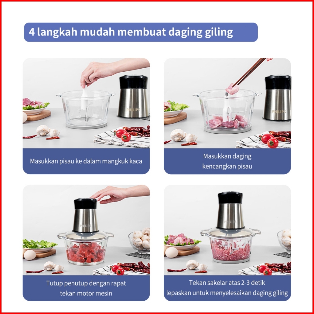 Philips Chopper Blender Penggiling Daging Serbaguna Meat Grinder Food Processor 2l
