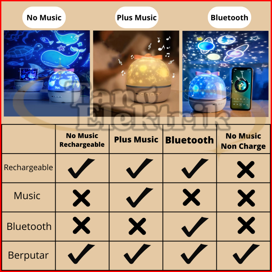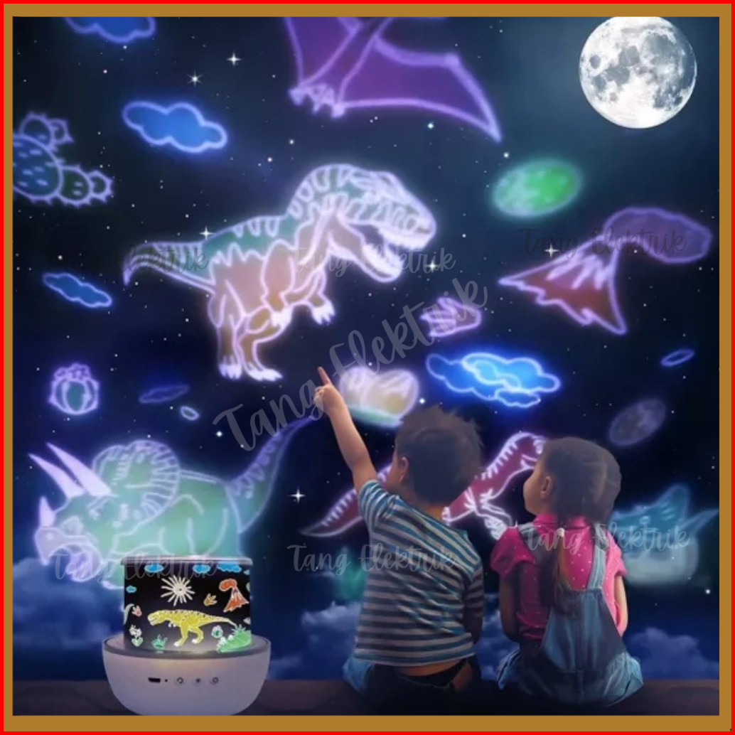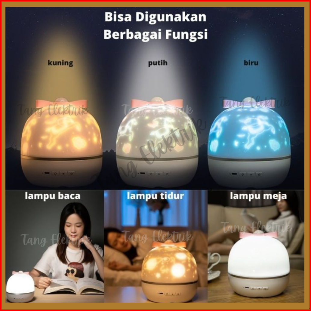 Lampu Tidur Proyektor Langit Bulan Bintang Rotasi Rechargeable