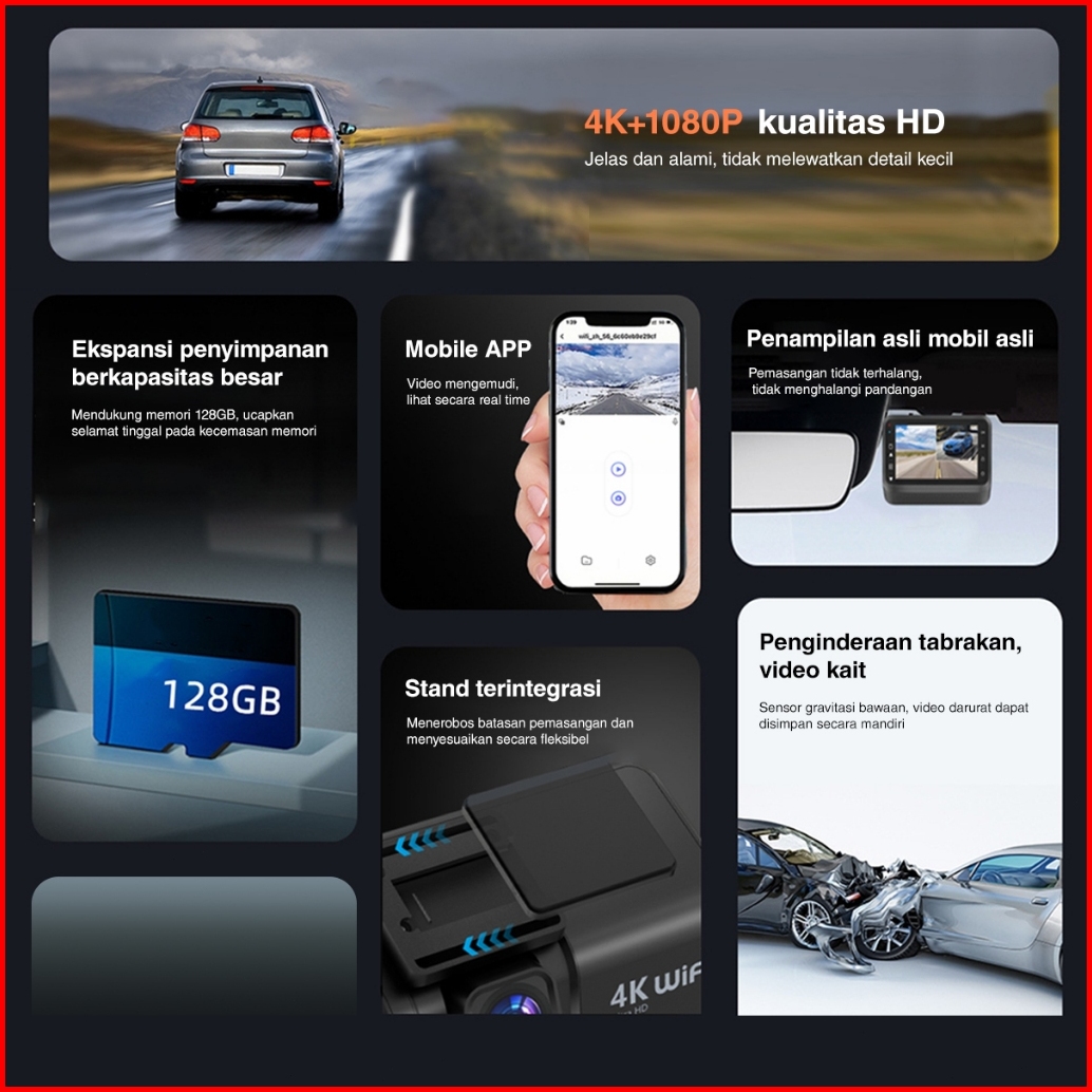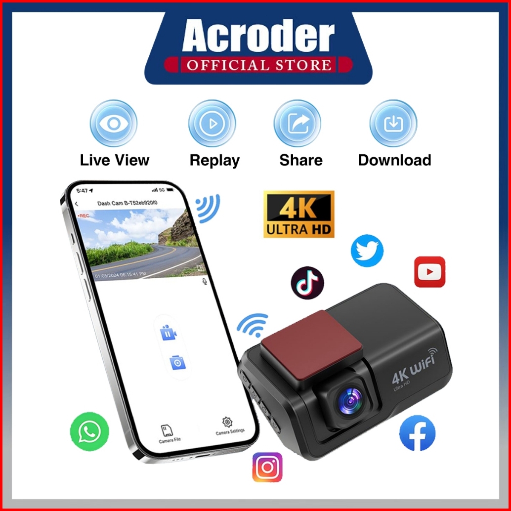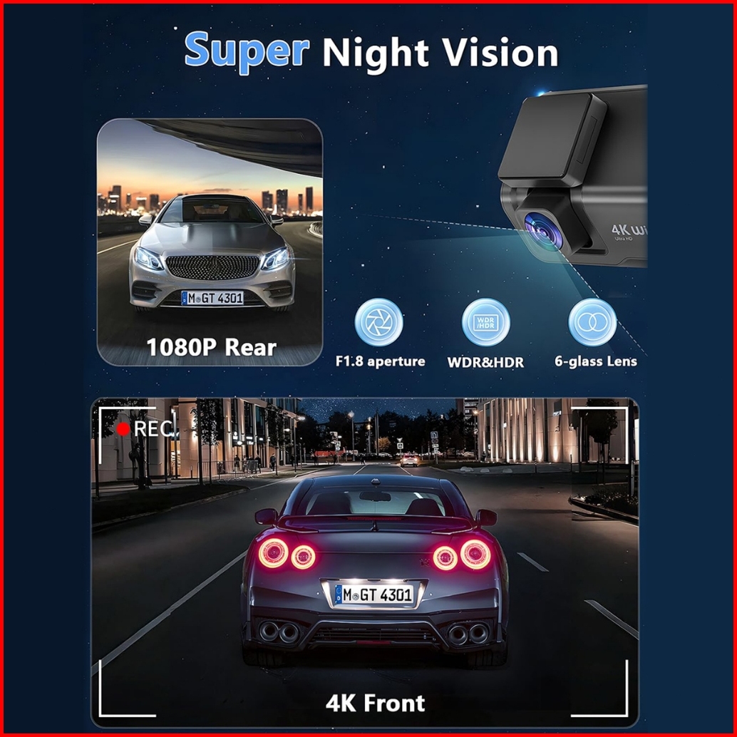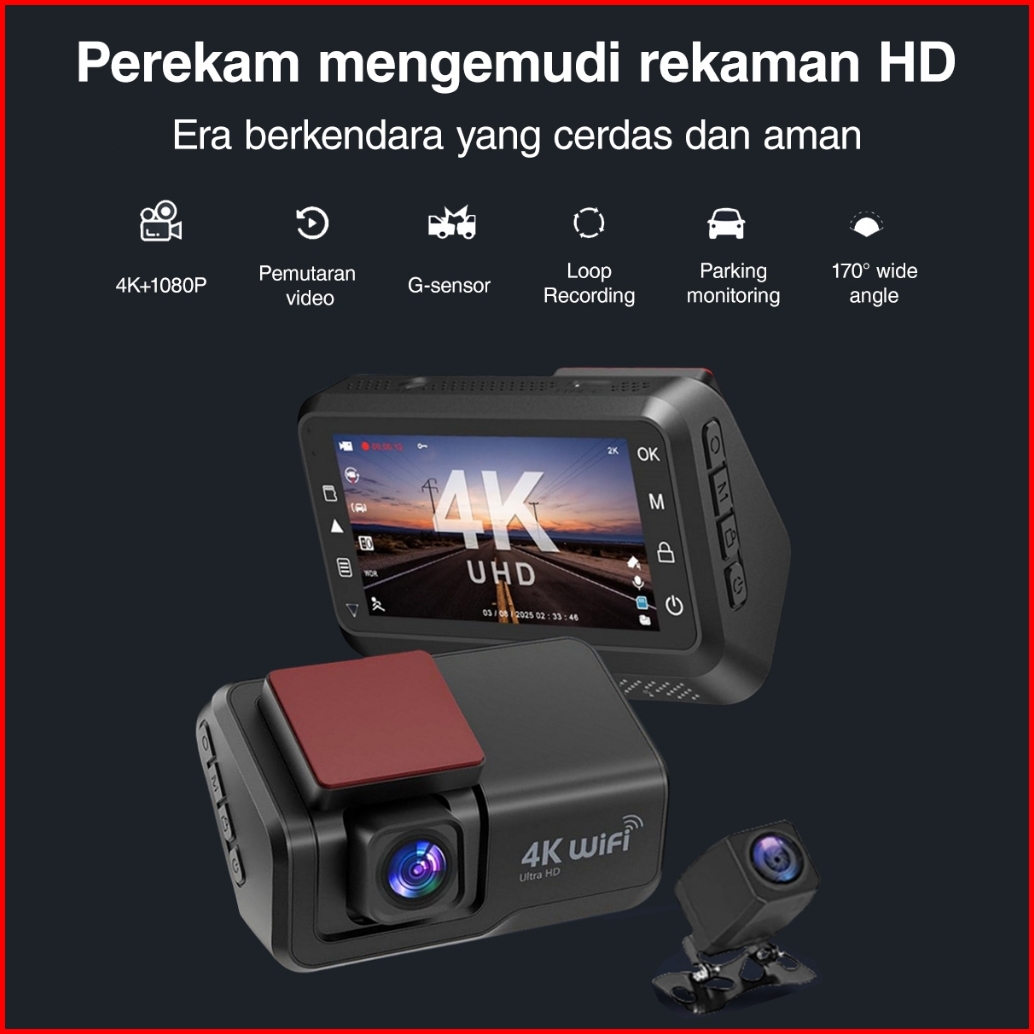 4k Hdacroder 4k Gps Dashcam Mobil Wifi 3 Inch Ultra-clear Night Vision G-sensor Loop 24 Jam