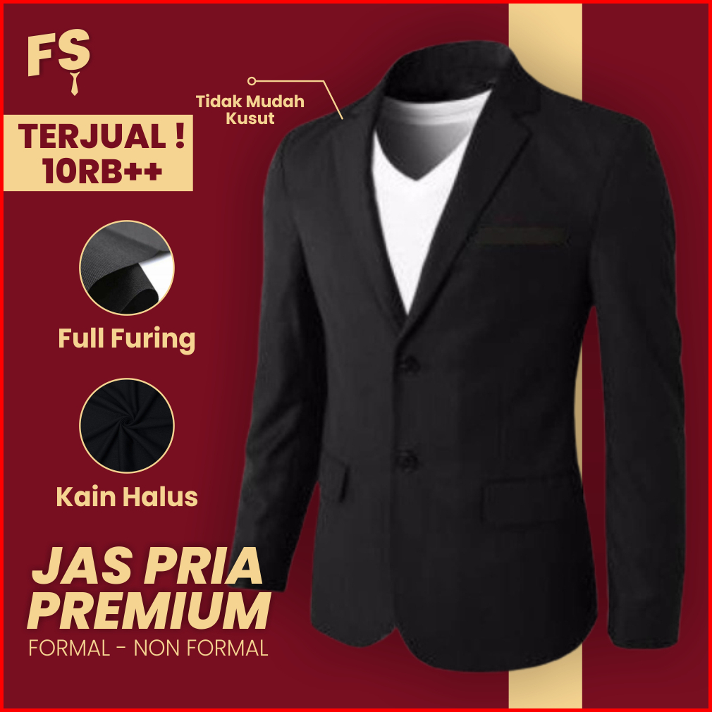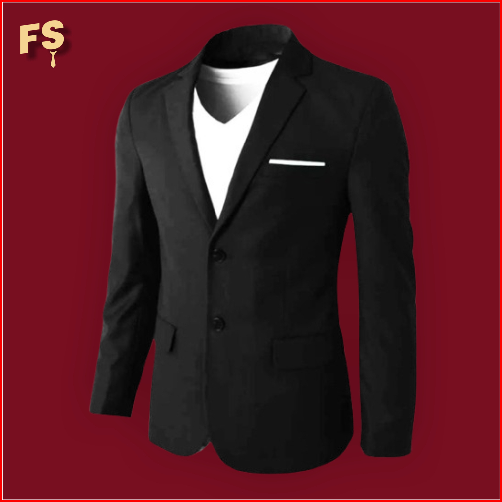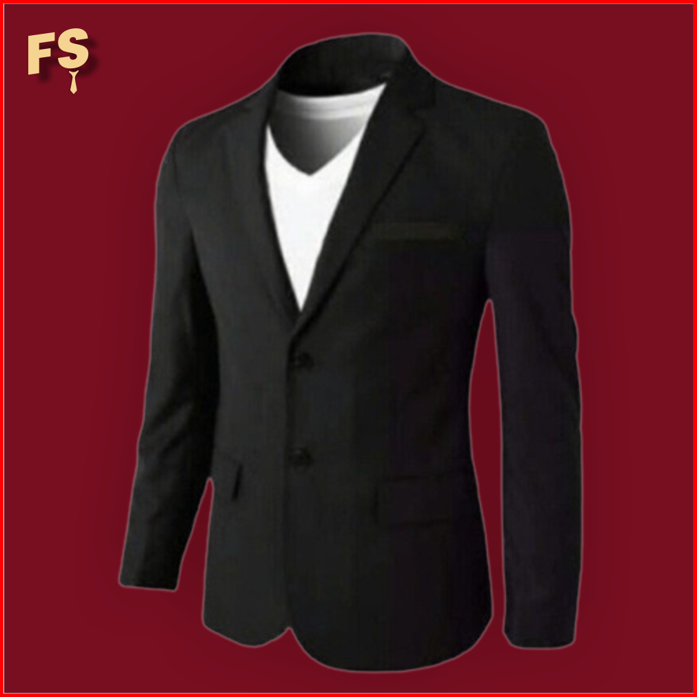 Blazer Jas Korea Nikah Wisuda Pengantin Pria Slim Fit Formal - Hitam Polos
