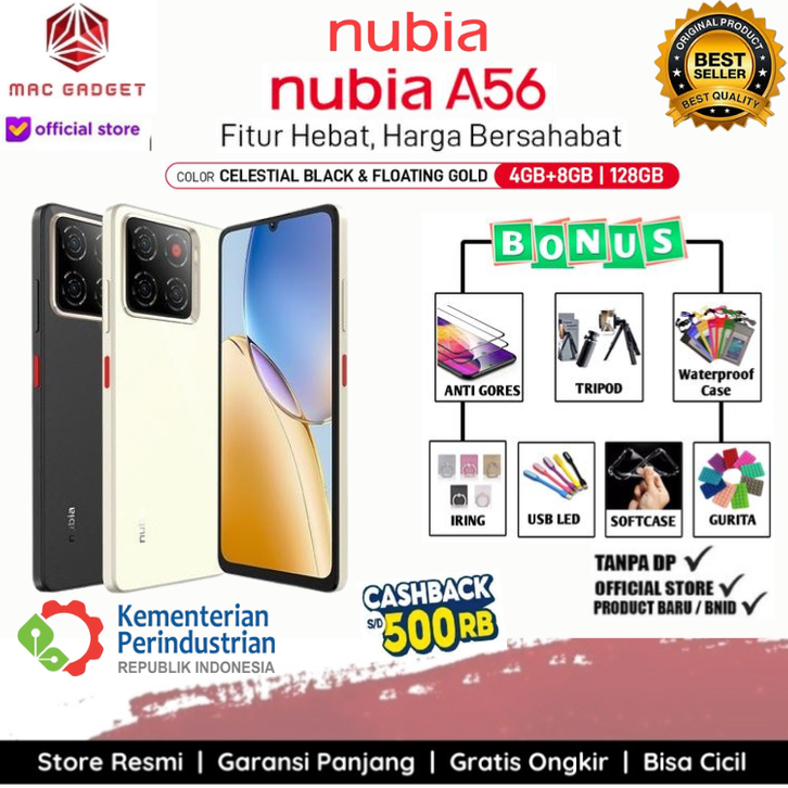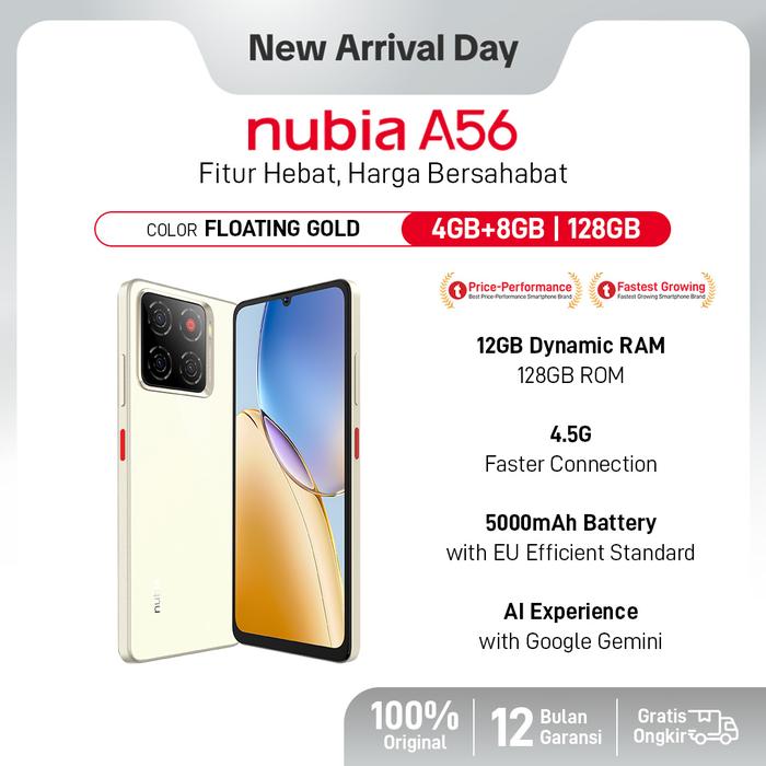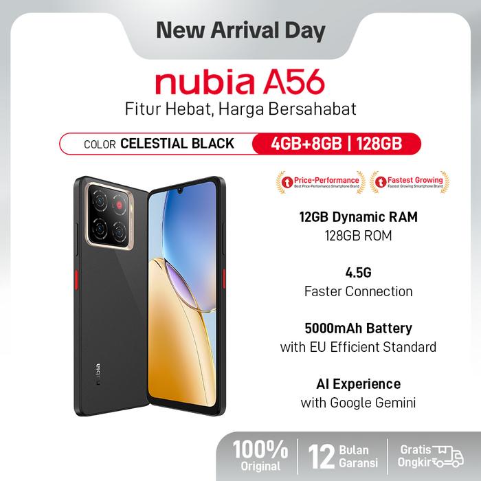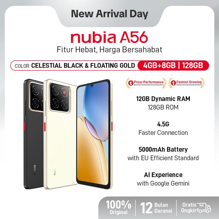 Official Store 🔥Handphone nubia A56 ROM 128GB RAM 12GB (4+8GB) Smartphone Kamera AI 13MP Triple Camera Layar 6.75" 90Hz