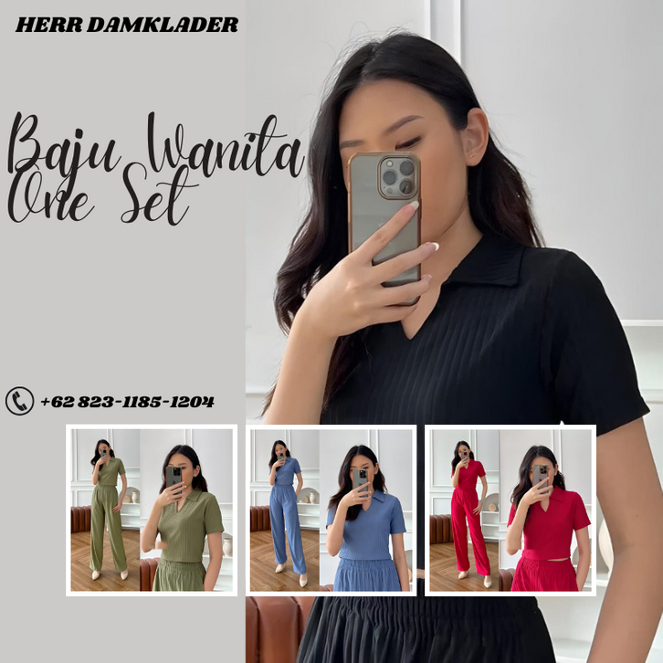 Baju Wanita One Set Crop Pakaian Kaos Setelan Knit Hornet Premium Kombinasi Korea Style Jumbo Rayon Mix Matt Caramel