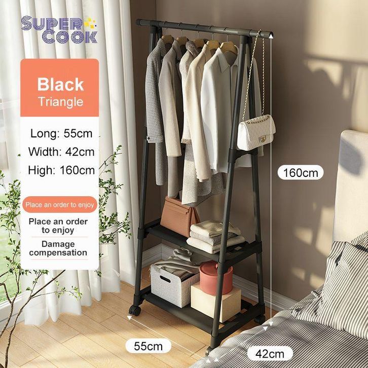 Triangle Stand Hanger Coat Rack Gantungan Besi Berdiri Topi Baju Tas Gantung Jacket Rak Buku Serbaguna Pakaian Dengan 4