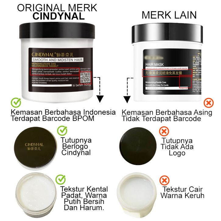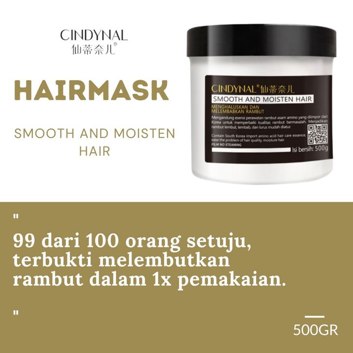 Masker Rambut Cindynal Hair Mask Smooth And Moisten Hair Mask Isi 500gr Perawatan Rambut BPOM