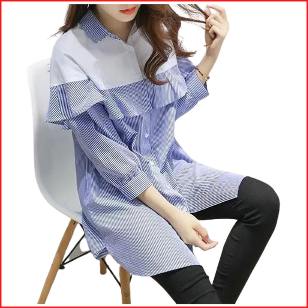 Vallina Outfit - Denia Top Atasan Salur Oversize Wanita Muslim Matt Katun Premium Casual Daily