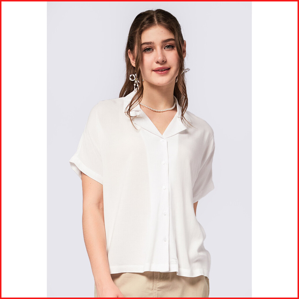 Colorbox Notch Collar Short Sleeve Shirt Off White