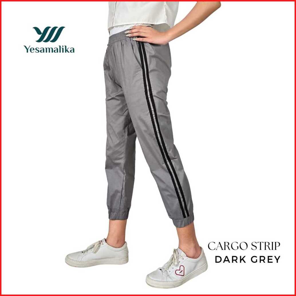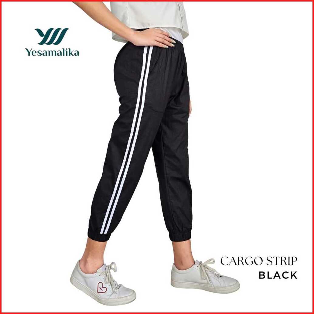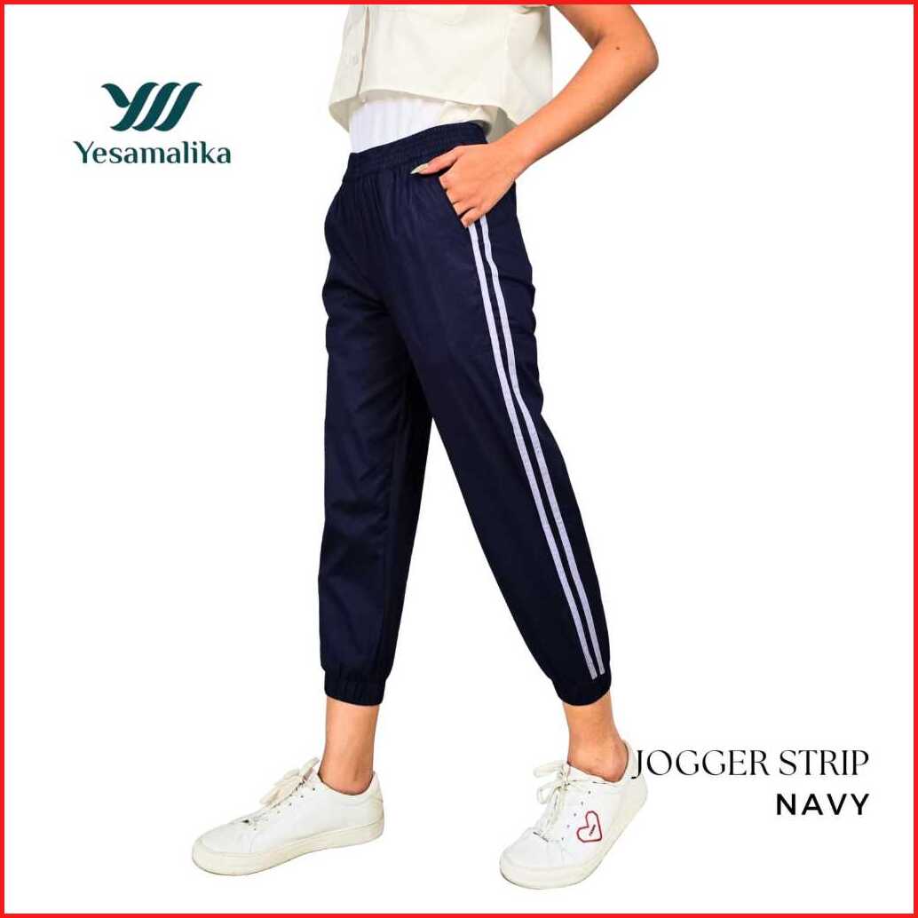 Yesamalika Joger Strip 7 8 Celana Wanita Bahan Katun Stretch Size Reguler Jumbo Super Jumbo