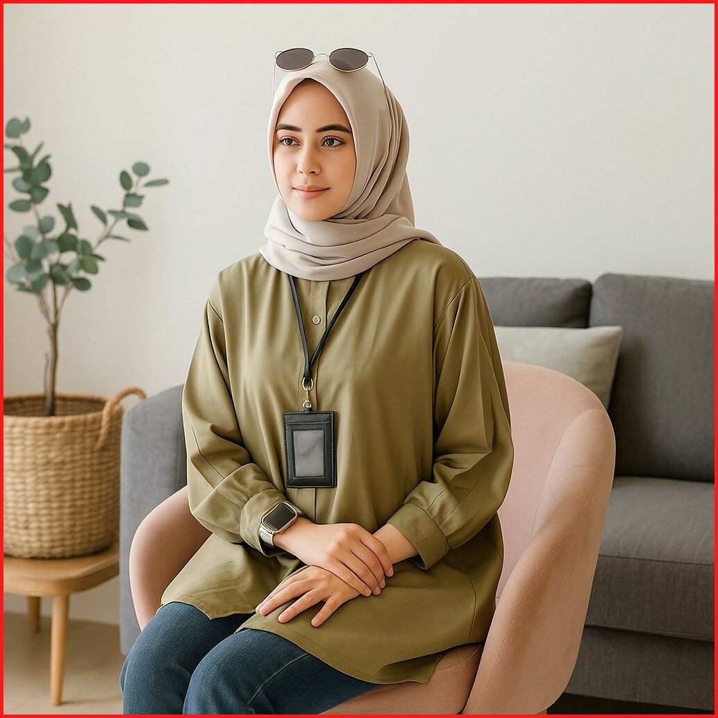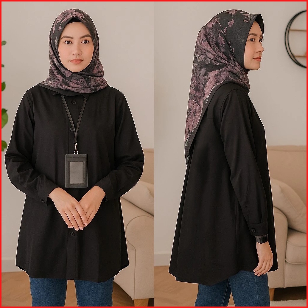 Femes Sofwa Top Blouse Atasan Wanita Muslim Oversize Besar Matt Rayon Viscose Raisa Kemeja Premium