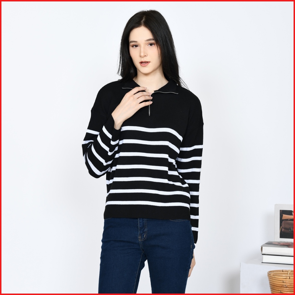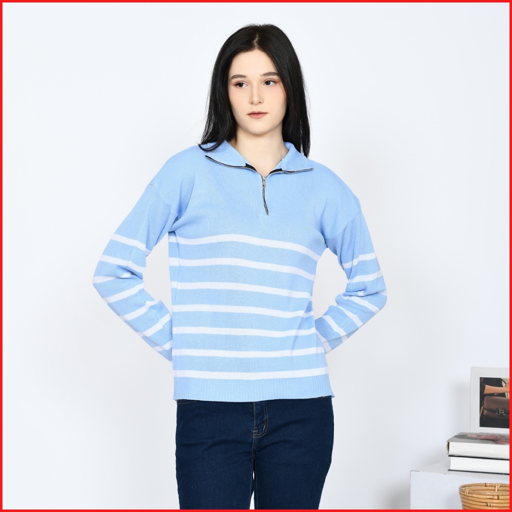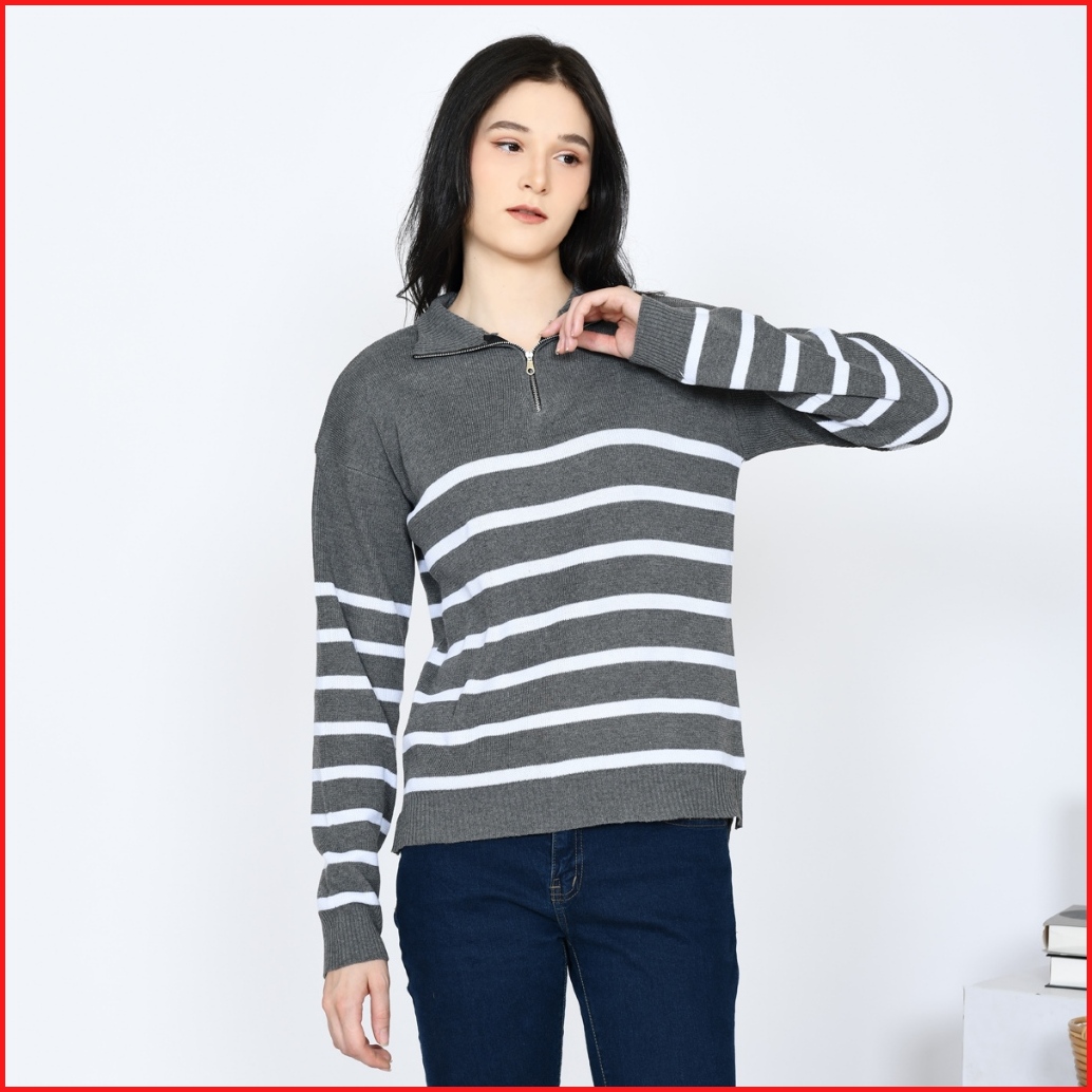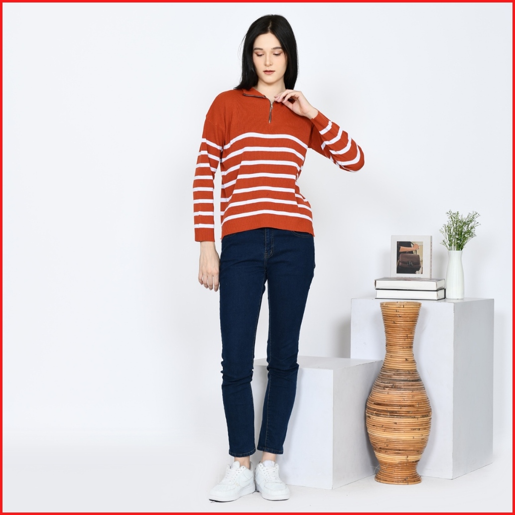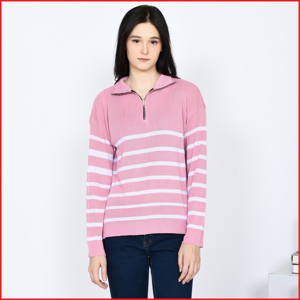 Milkan.id Vero Turtle Neck Oversize Knit Premium - Sweater Wanita Premium Motif Stripe