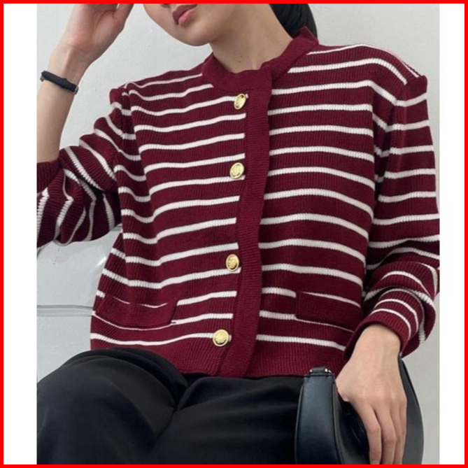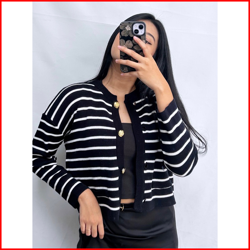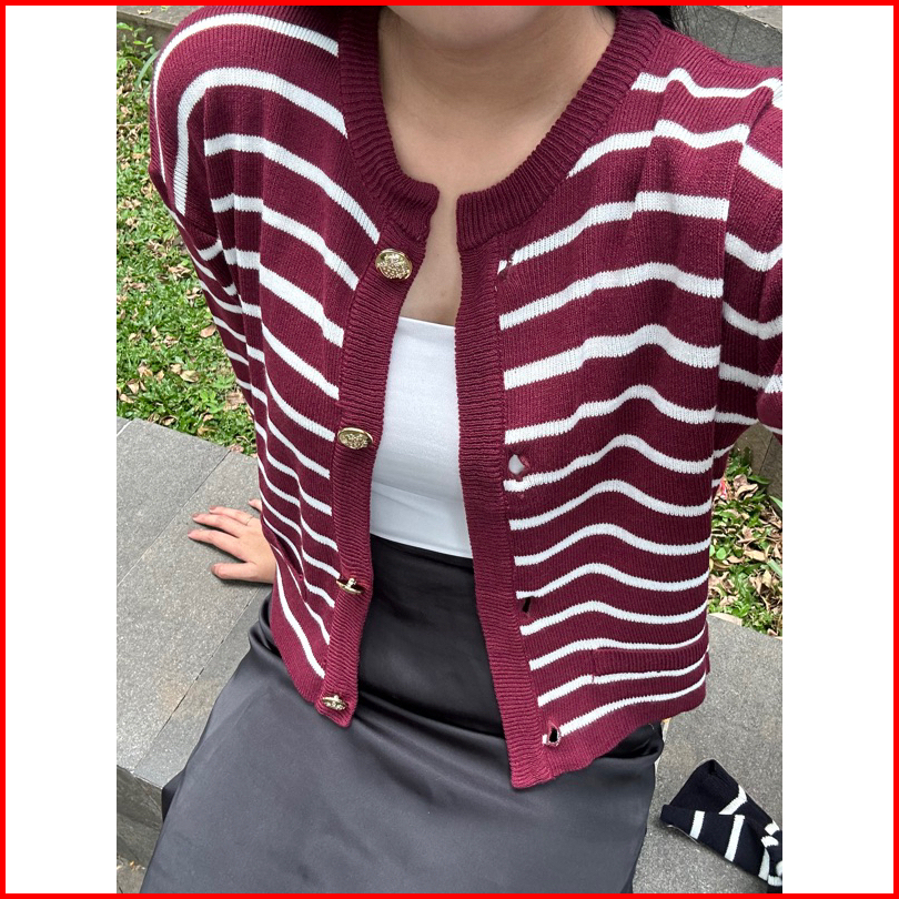 Cheesy Cardy Stripe Kinara Kardigan Jisso Cardigan Kancing Knit Wanita