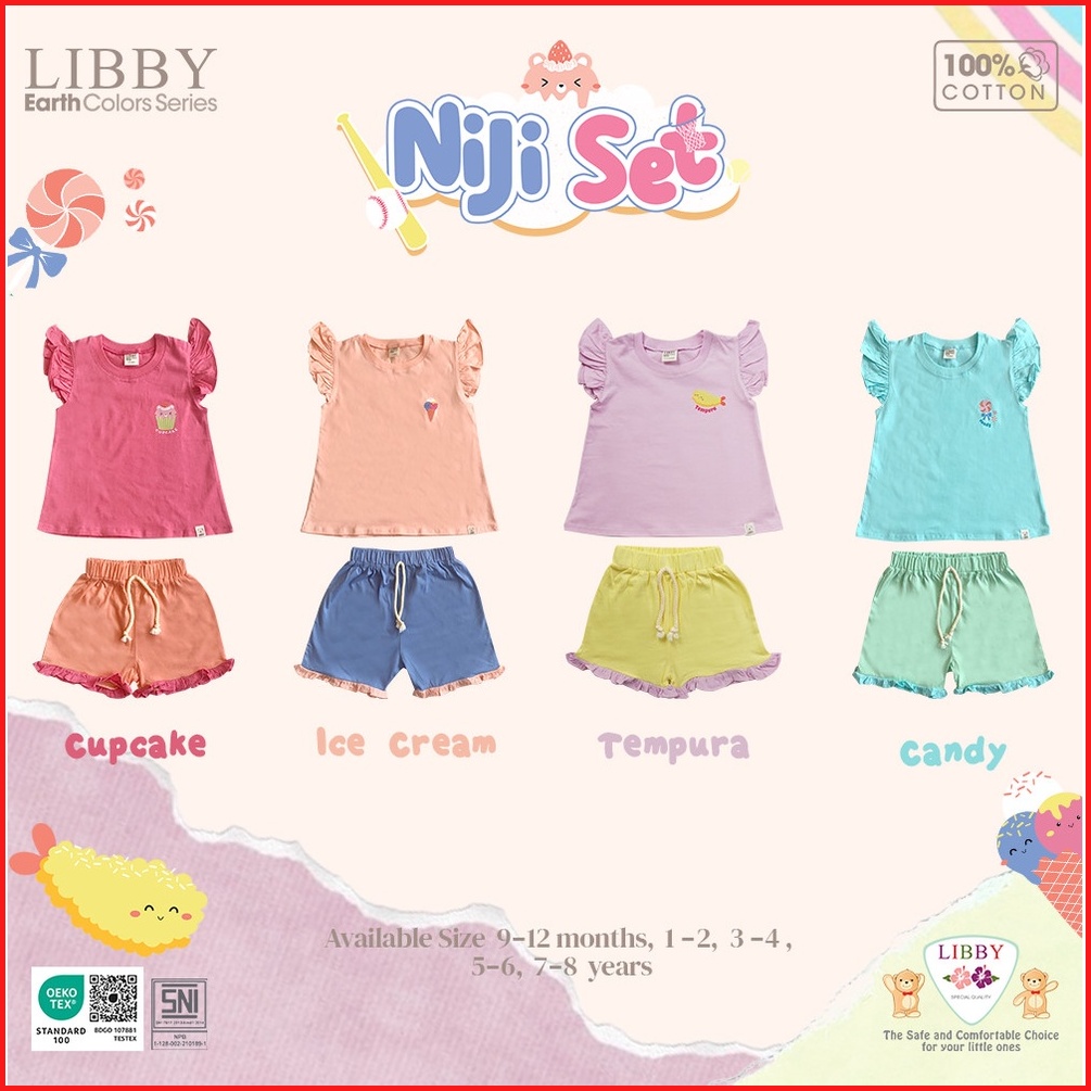 Libby Earth Setelan Anak Niji Set Oblong Pendek Celana Pendek Series Girl 1 Stel