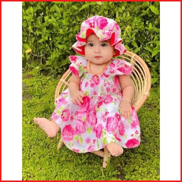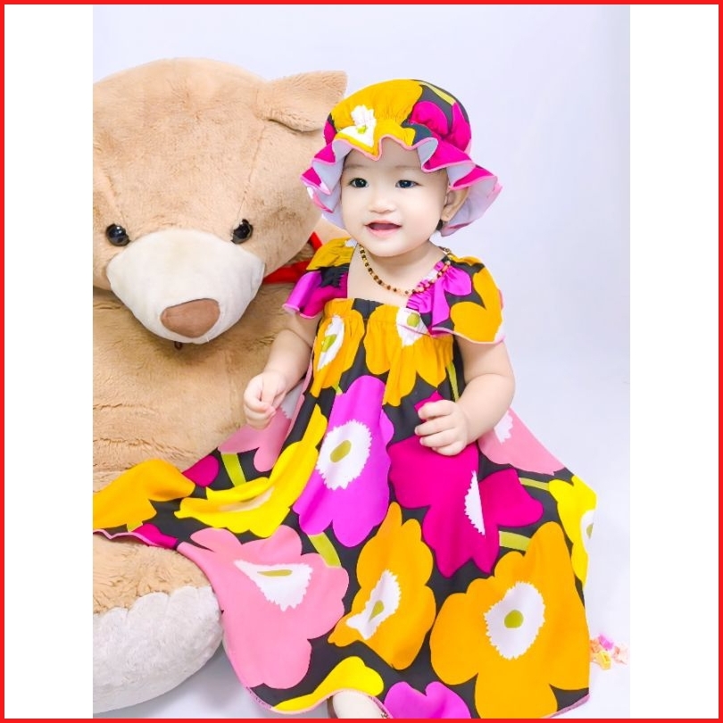 Dress Bayi Bahan Katun Free Topi Dress Bayi Murah