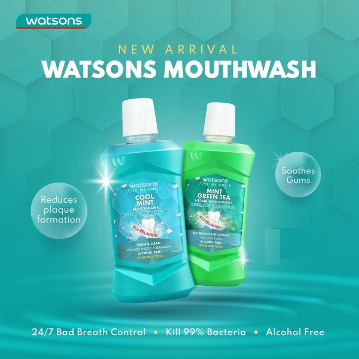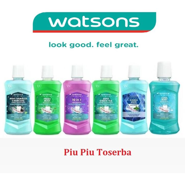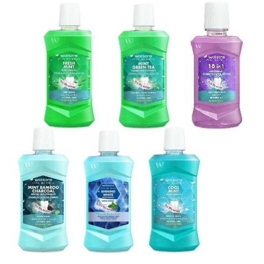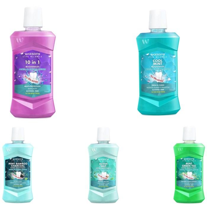 Obat Kumur Mouth Wash Watsons Watson Love My Smile Fresh, Cool, Mint, Green Tea, Bambo Charcoal, 10 in 1, Active Salt