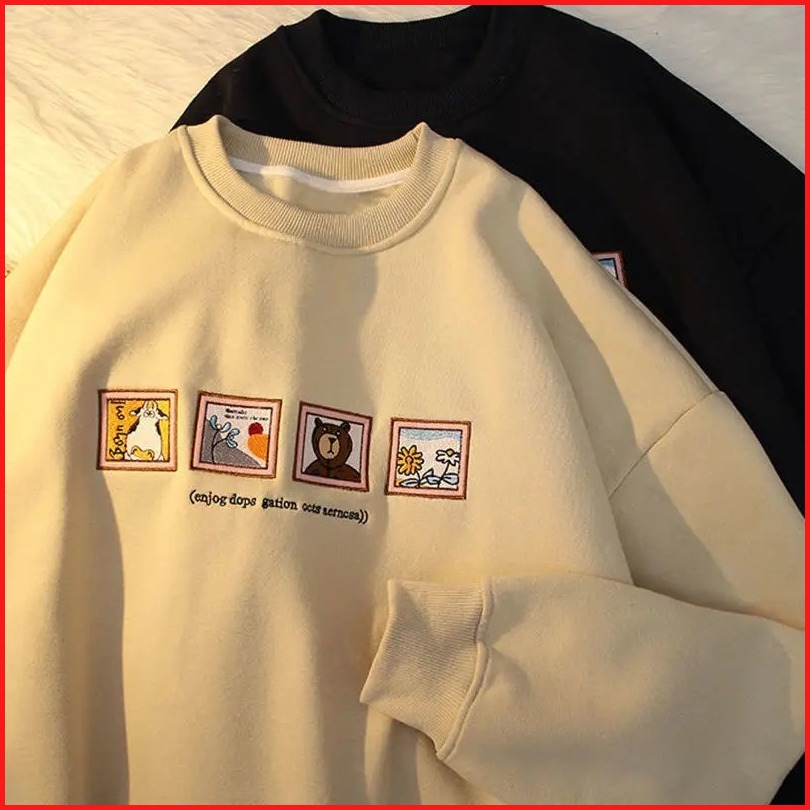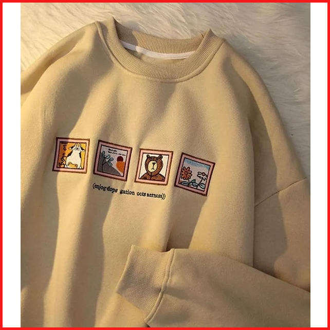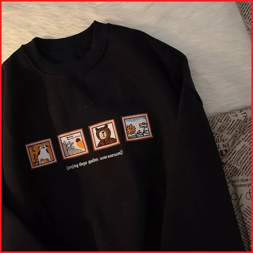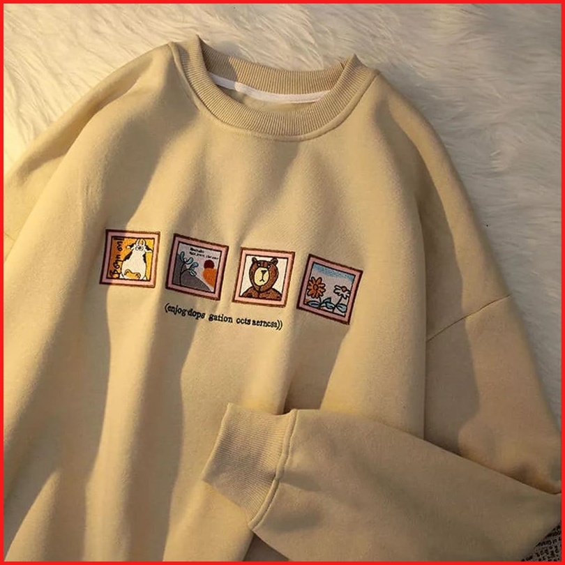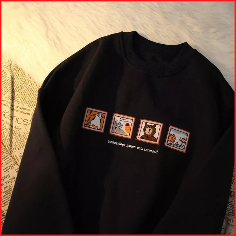 Vallina Enjog Dops Gation Sweater Crewneck Outerwear Wanita Korean Style