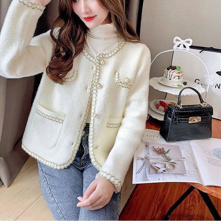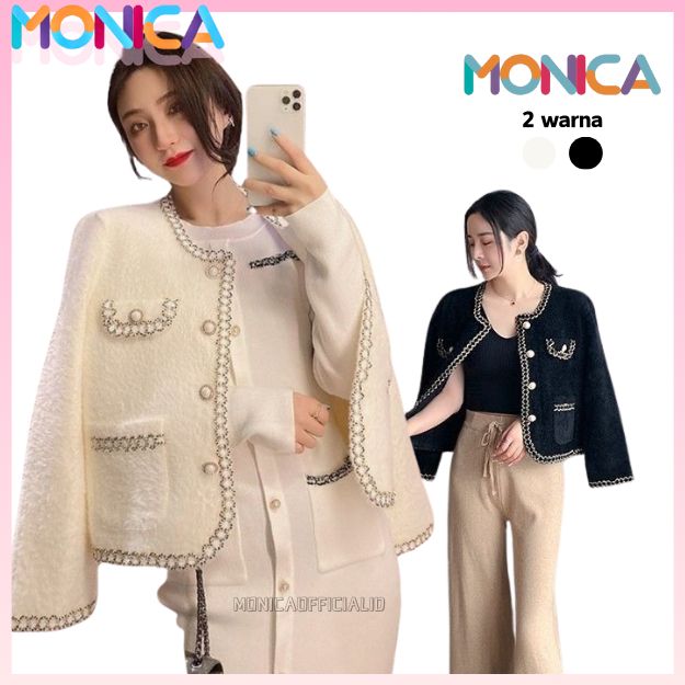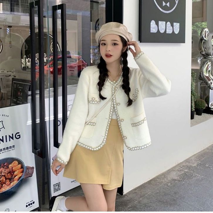 Cardigan Wol Rajut Korean Style Lis Full Mutiara
