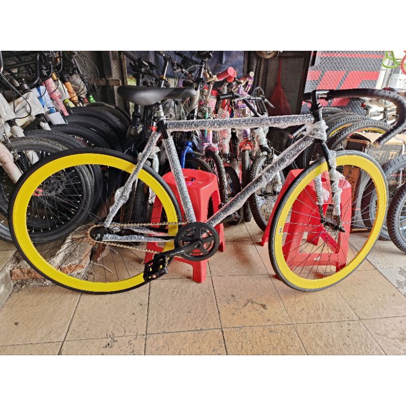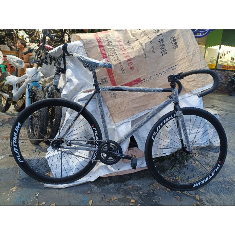sepeda fixie ukuran 700c frame besi lokal rem torpedo stang drogbar velk platinum 5cm araya ks40
