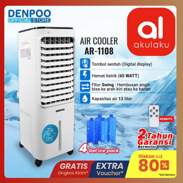 Kipas Angin Ac Air Cooler DENPOO AR 1208 XF 12 Liter Air Cooler Dingin Terbaik Air Purifier Ruangan Low Watt
