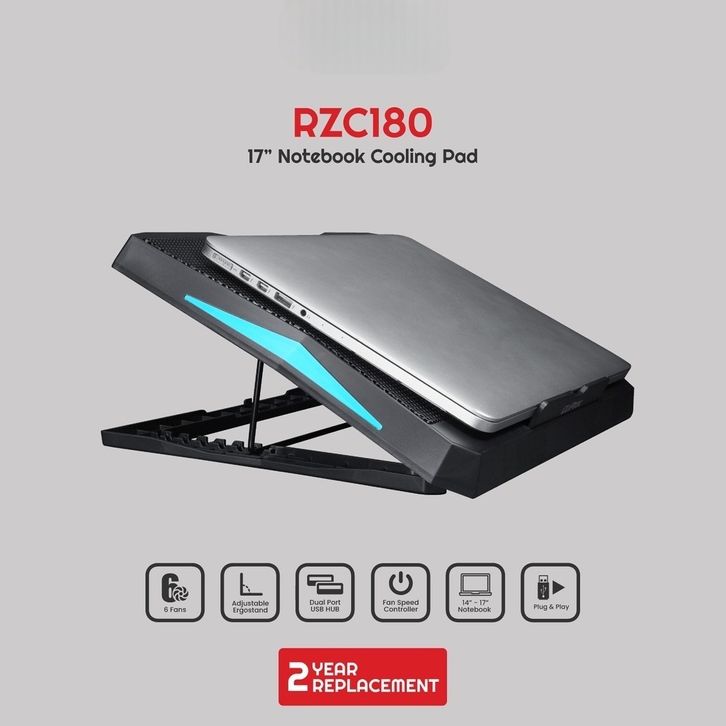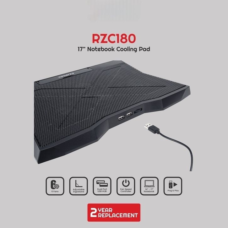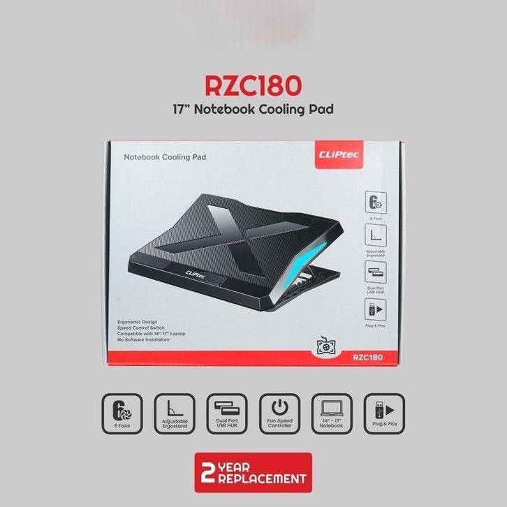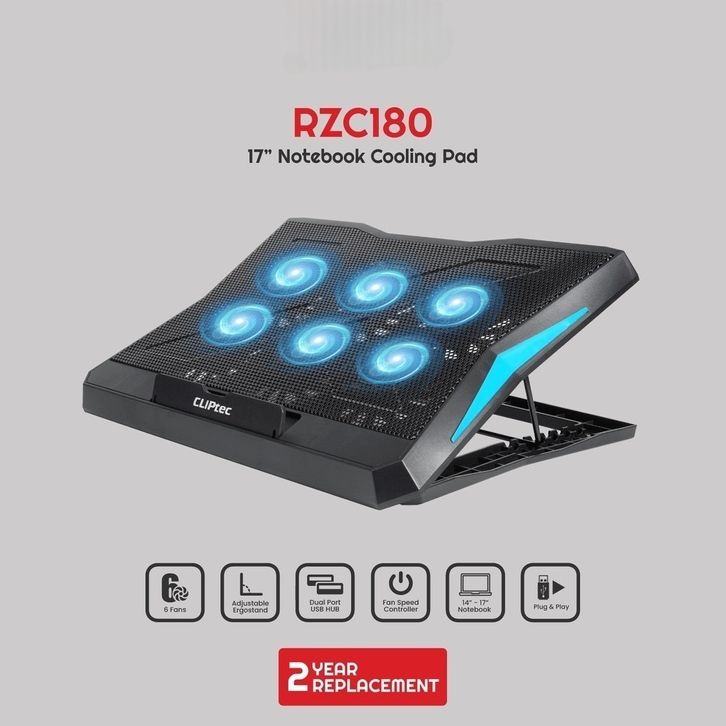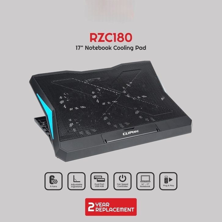 COOLING PAD LAPTOP 6 FAN ADJUSTABLE ERGOSTAND 17 INCH DUAL PORT USB HUB CLIPTEC RZC180 ORIGINAL
