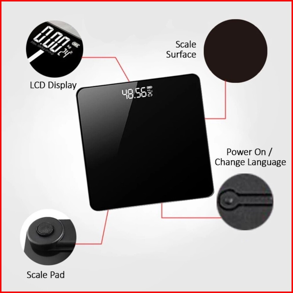 Timbangan Badan Digital Max 180kg Free Baterai - Alat Pengukur Berat Badan Digital Ukuran 26x26cm
