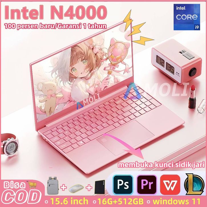 AMOLI「100% Baru」Laptop RAM 16+512GB SSD Intel N5095 15.6'' HD Layar Windows 11 Pro Office untuk kantor terbaru