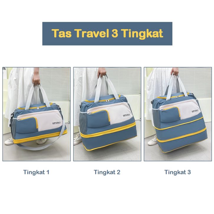 Tas Travel Jumbo 3 Tingkat Travel Bag Bigsize Travel Bag Waterproof Bisa Dilipat Jadi Mini Banyak Tempat Penyimpanan