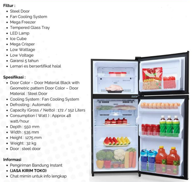 GRATIS ONGKIR BANDUNG KOTA - Sharp Sj195mnhs Kulkas 2 Pintu Low watt 152 Liter SJ195